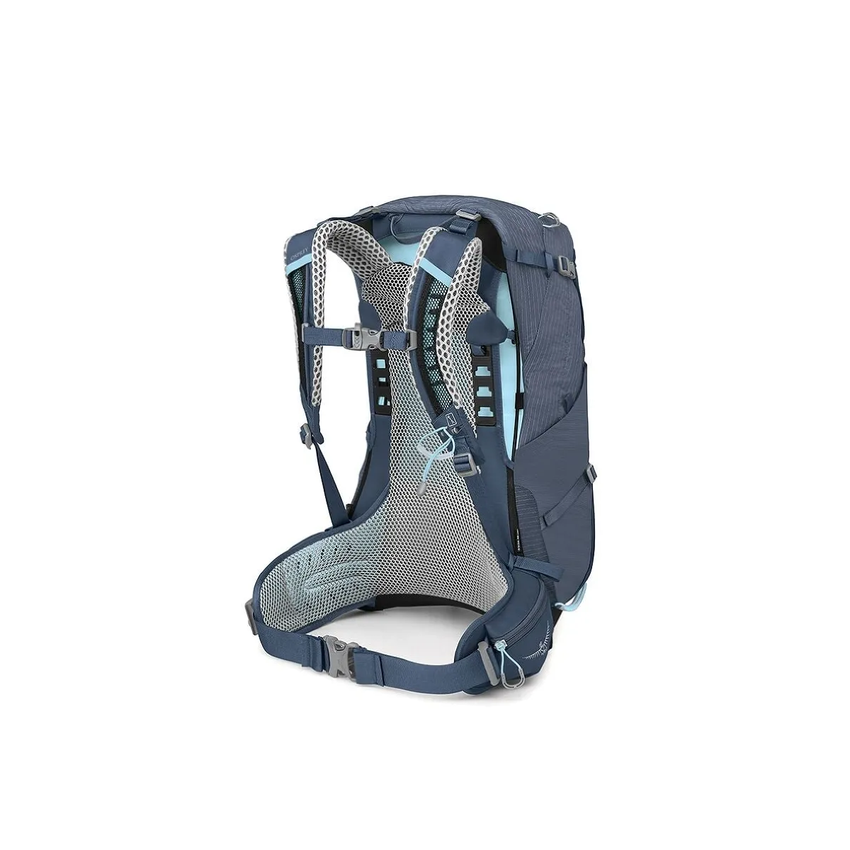La Osprey Sirrus 24 L es una mochila técnica para senderismo de día y actividades outdoor, diseñada específicamente para mujer con un sistema de suspensión ventilada y ajuste ergonómico. Ofrece un volumen ideal de 24 L para llevar equipo esencial, agua, comida y ropa de repuesto en caminatas de varias horas. Está construida con materiales sostenibles y reciclados, con atención al confort, funcionalidad y durabilidad en rutas exigentes.