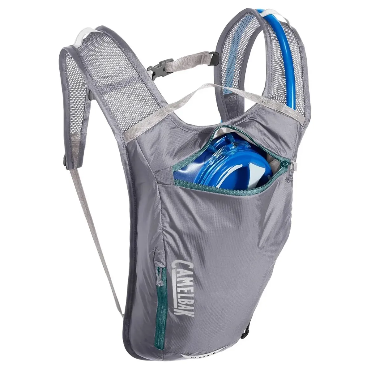 La Camelbak Classic Light 2L Gunmetal/Hydro es una mochila de hidratación ligera y versátil diseñada para ciclismo, senderismo y aventuras cotidianas, combinando comodidad con funcionalidad eficiente.