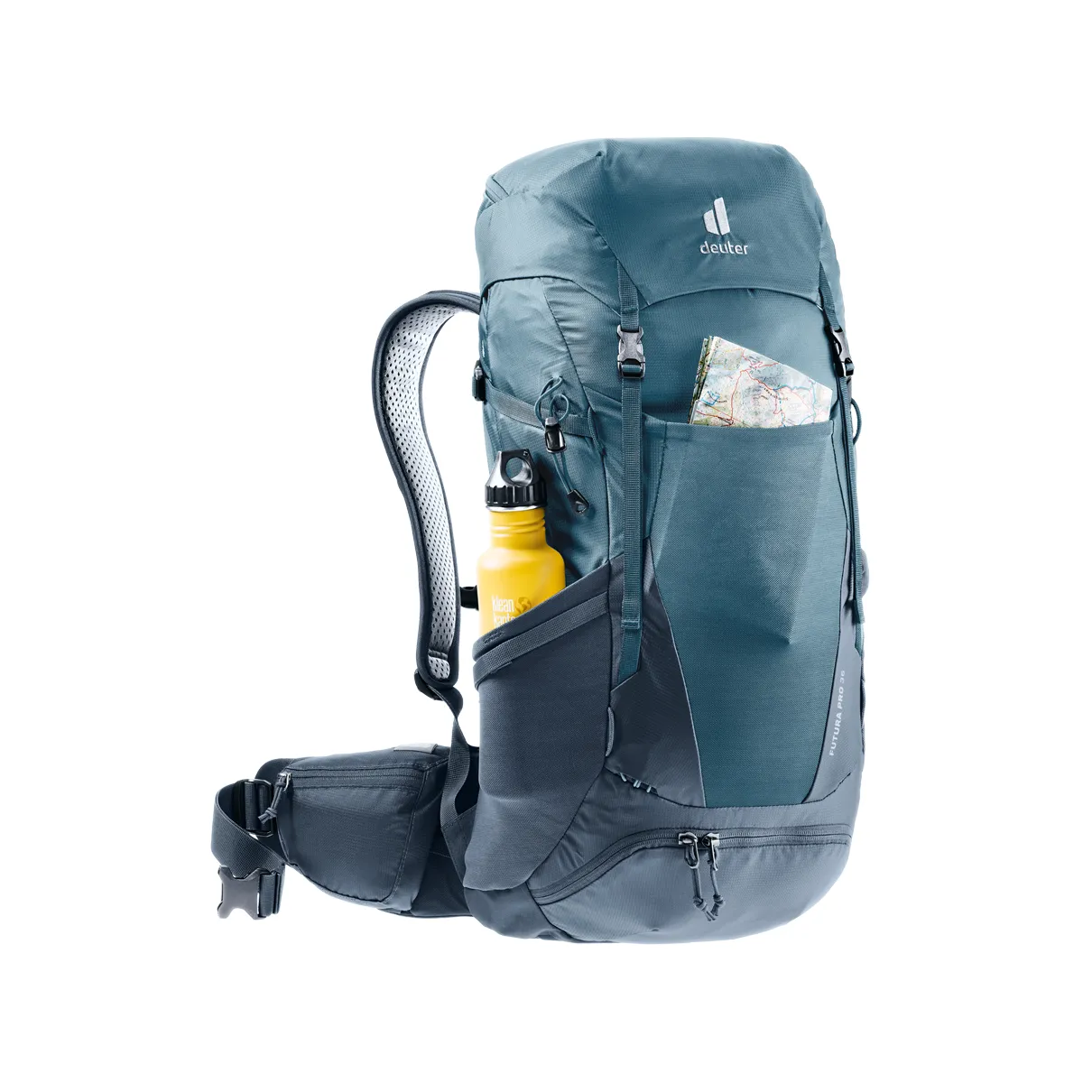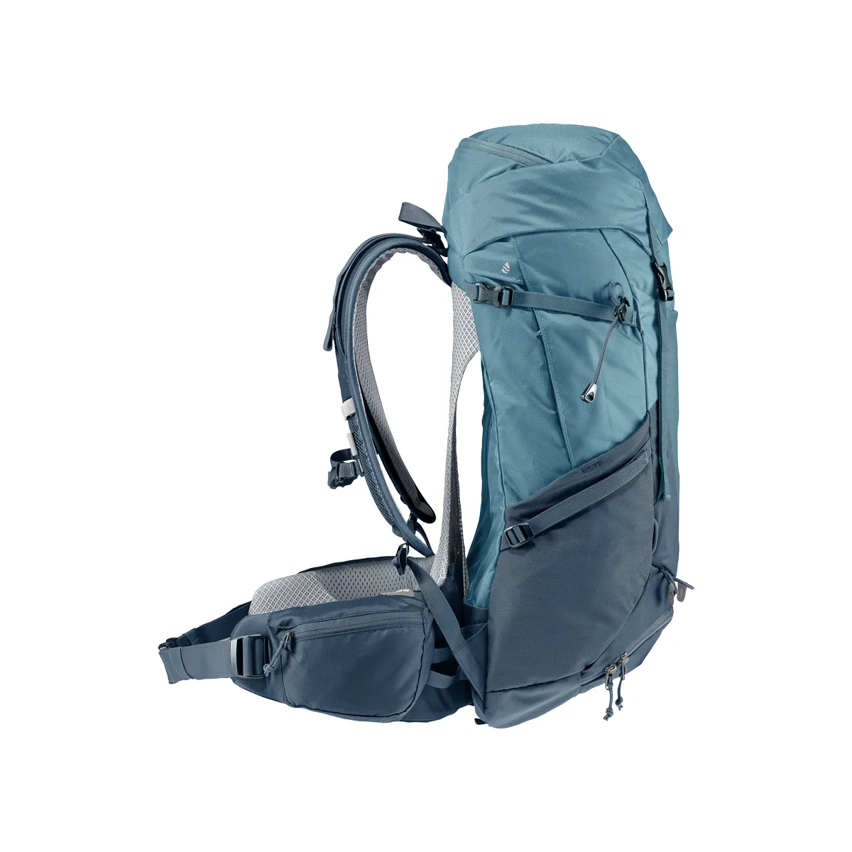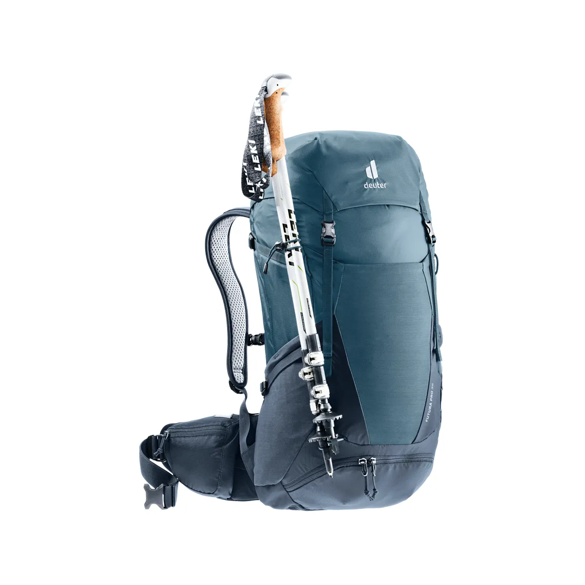El Futura Pro ha sido pensado hasta el último detalle y ha sido desarrollado para excursiones de varios días donde no debe faltar la comodidad. Por eso la mochila de senderismo está equipada con el sistema ergonómico Aircomfort Sensic Pro. Esto garantiza la máxima ventilación de la espalda gracias a la innovadora malla. Además, las aletas móviles de cadera VariFlex ECL con elementos acolchados ergonómicos permiten un transporte con ahorro de energía. Gracias a la clara división de los compartimentos, las cosas se pueden guardar fácil y ordenadamente en el compartimento superior, los bolsillos laterales, el compartimento inferior separado y el espacioso compartimento principal.