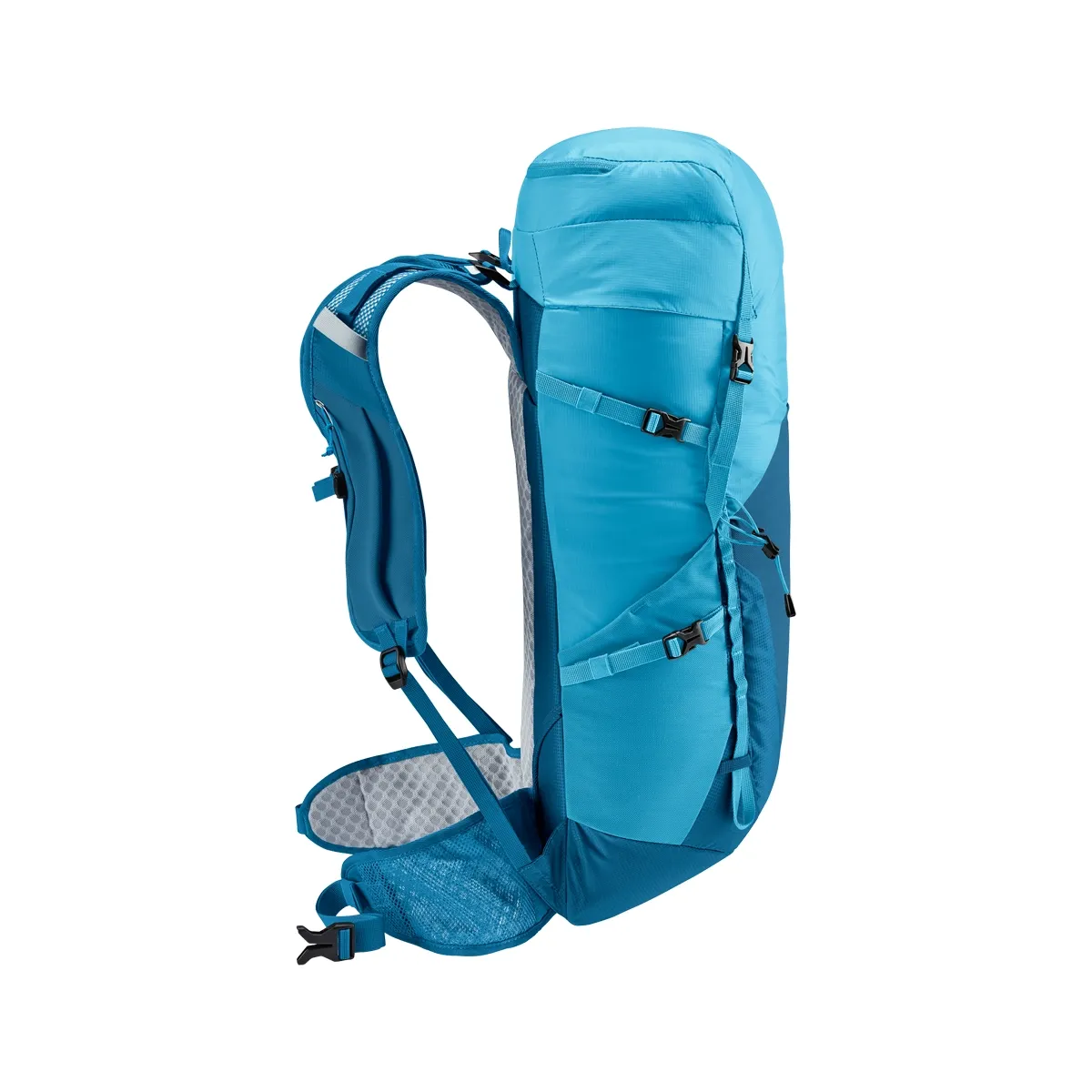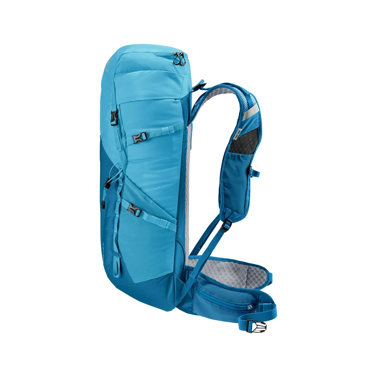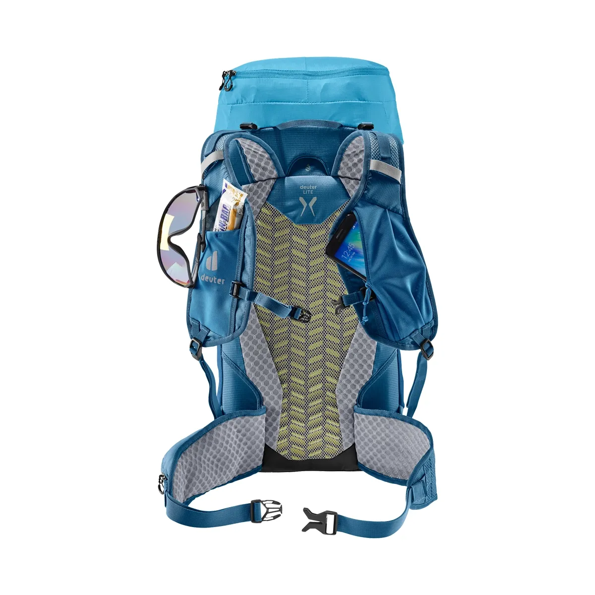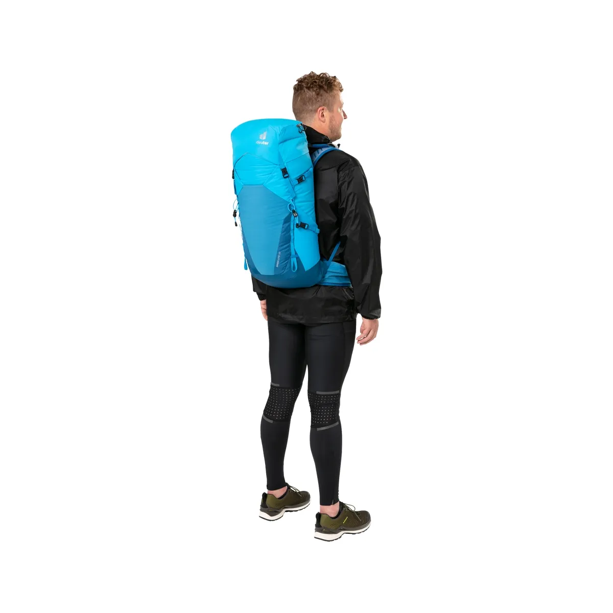 Rápido, ligero y sostenible gracias al sistema de espalda Lite de Deuter, estilo chaleco, tirantes perforados, aletas de cadera flexibles, correa de esternón ajustable con precisión y tejido corporal 100 % reciclado con certificación bluesign®. Diseñado para caminatas y carreras de montaña de ritmo rápido, las correas de compresión laterales reducen efectivamente el tambaleo de la carga y permiten un rango completo de movimiento. Mientras que un bolsillo en las correas de los hombros mantiene a mano todo lo que necesita en el camino y los artículos más grandes se pueden guardar en el espacioso bolsillo de la tapa.