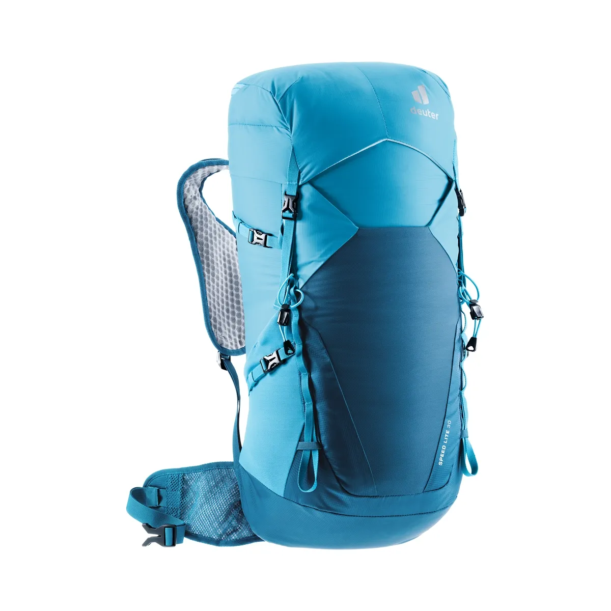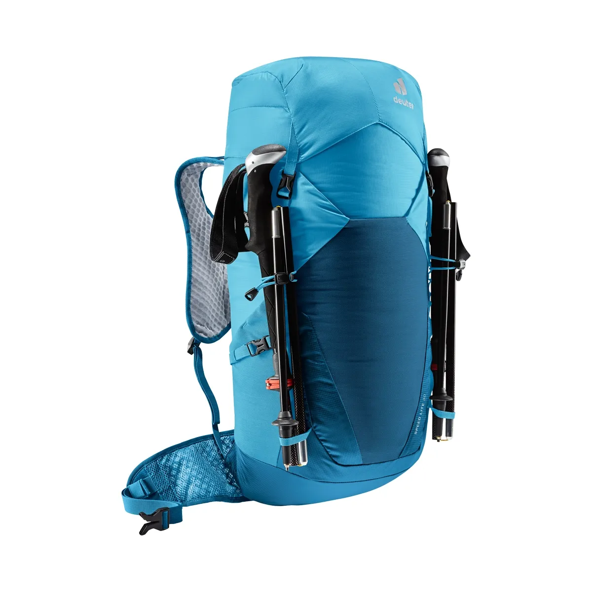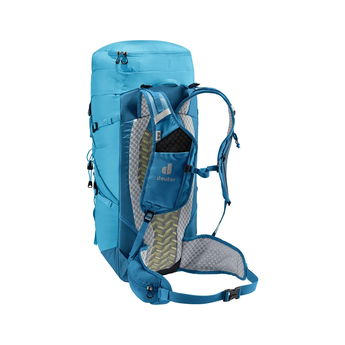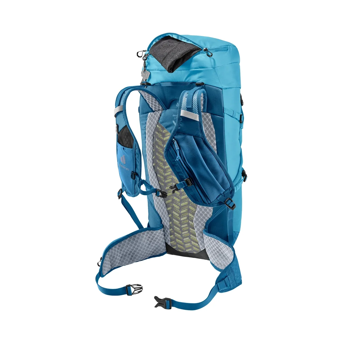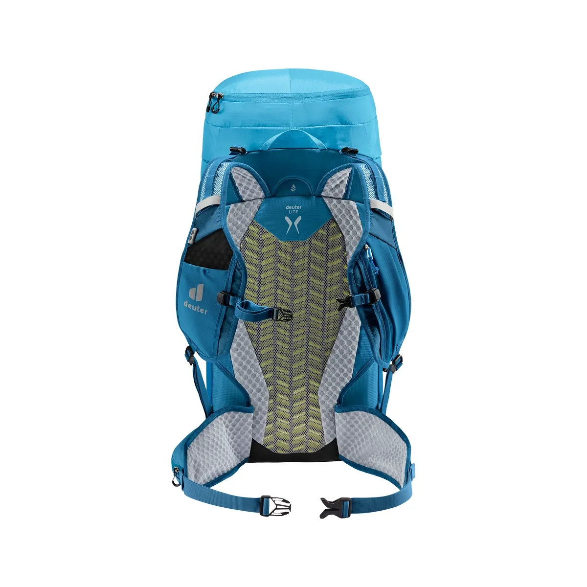 Rápido, ligero y sostenible gracias al sistema de espalda Lite de Deuter, estilo chaleco, tirantes perforados, aletas de cadera flexibles, correa de esternón ajustable con precisión y tejido corporal 100 % reciclado con certificación bluesign®. Diseñado para caminatas y carreras de montaña de ritmo rápido, las correas de compresión laterales reducen efectivamente el tambaleo de la carga y permiten un rango completo de movimiento. Mientras que un bolsillo en las correas de los hombros mantiene a mano todo lo que necesita en el camino y los artículos más grandes se pueden guardar en el espacioso bolsillo de la tapa.