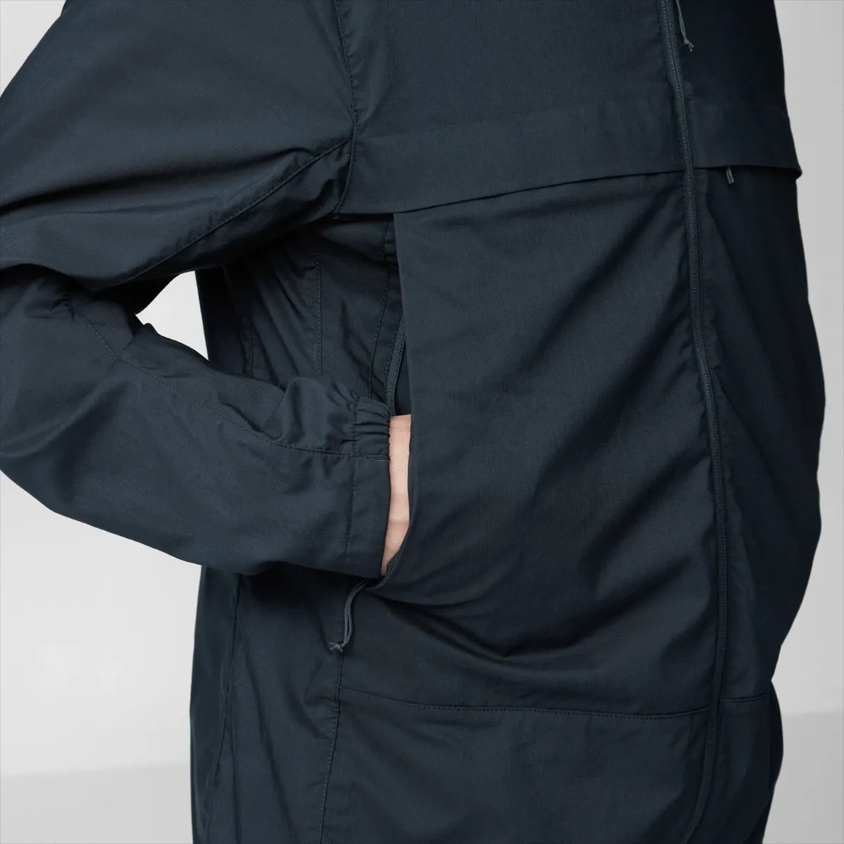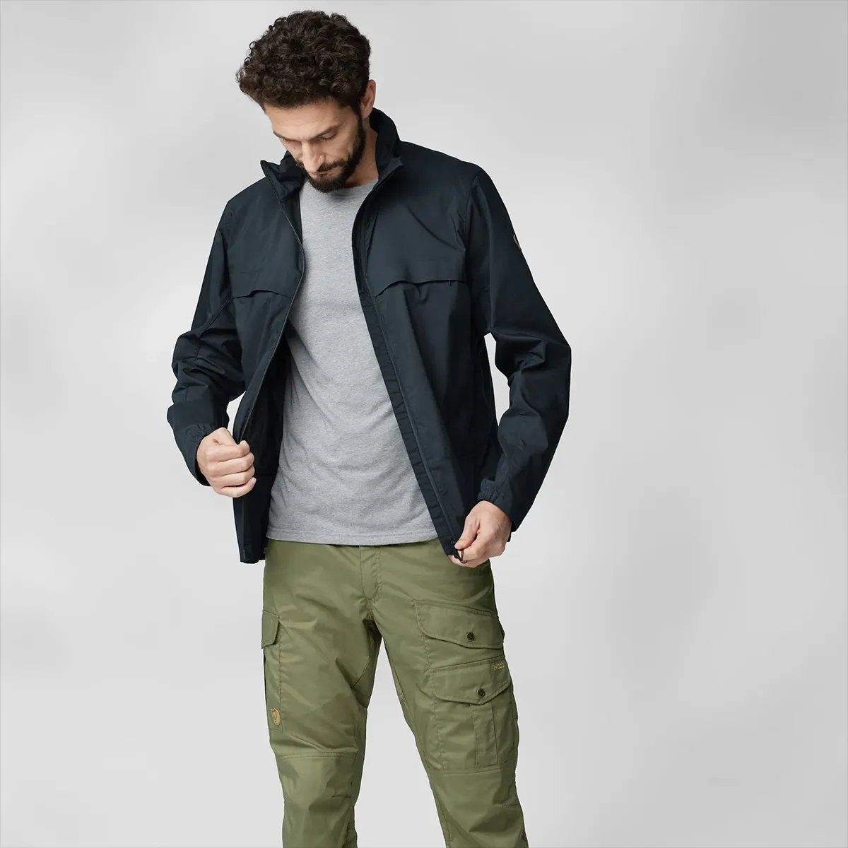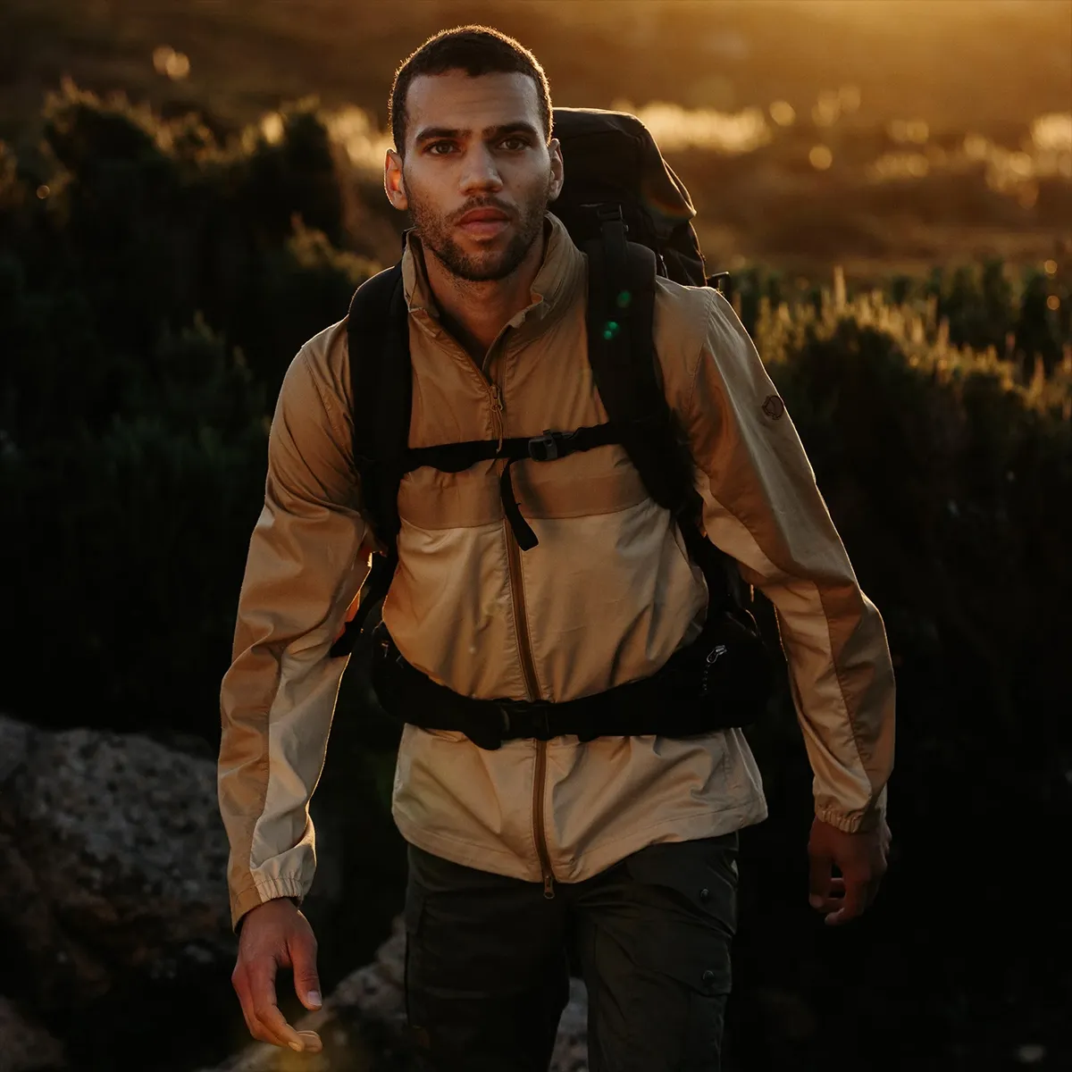 Chaqueta ligera, cómoda y plegable para senderismo y viajes en climas cálidos. La chaqueta Abisko Hike M ofrece propiedades perfectas para viajar y hacer senderismo en climas cálidos: transpirabilidad, comodidad y secado rápido. Está confeccionada en G-1000 Air Stretch con poliéster reciclado y algodón orgánico. Esta chaqueta de senderismo se pliega en su propio bolsillo, es ligera y fácil de guardar cuando no se usa. La capucha ajustable se enrolla y se guarda en el cuello. Cuenta con dos bolsillos laterales con cremallera, dos bolsillos superiores (uno con cremallera y otro con ribete), cordón ajustable en el bajo y puños elásticos.