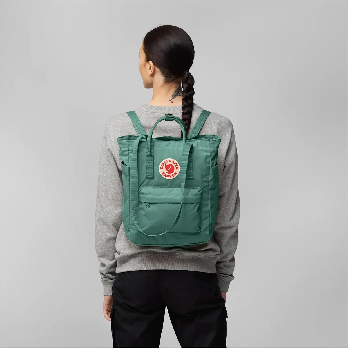 La Kånken Totepack es una versión convertible de la icónica mochila de Fjällräven. Puede usarse como mochila para ir en bicicleta o como bolso de hombro para subir a un autobús lleno de gente. Cuenta con un compartimento principal con cremallera y un bolsillo interior con base acolchada para un portátil de 13". Con la almohadilla para el asiento que encontrarás en la parte trasera del compartimento principal, siempre podrás tomarte un descanso, estés donde estés.