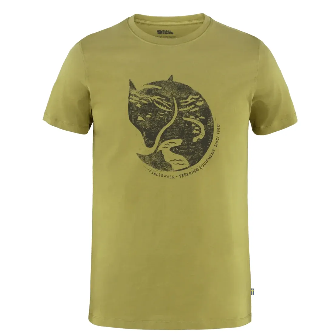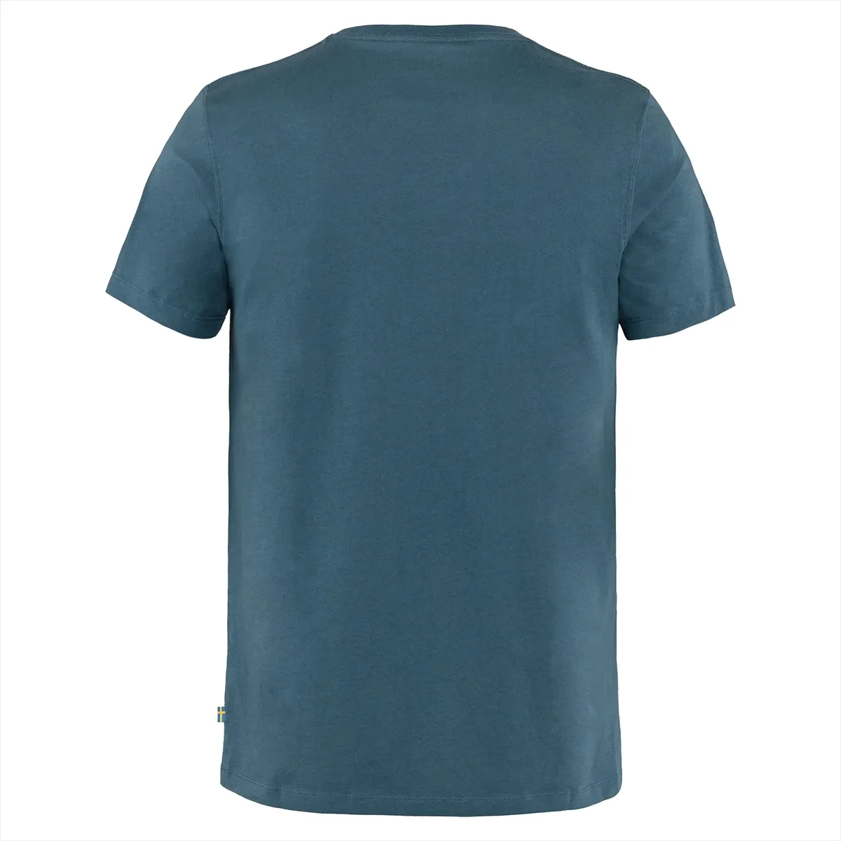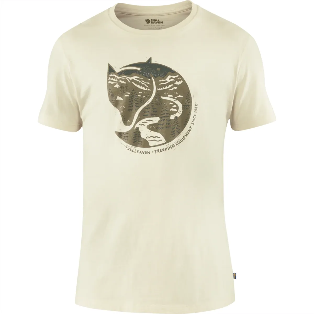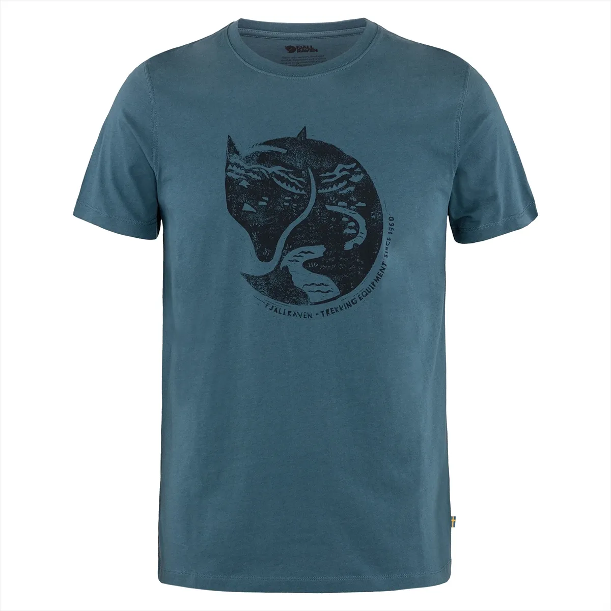 Camiseta de punto sostenible que combina la suavidad del algodón orgánico con la funcionalidad y durabilidad del poliéster reciclado. Absorbe la humedad y se seca rápidamente, lo que la hace especialmente cómoda en climas cálidos. Cuello redondo y estampado clásico de Fjällräven de la década de 1970 en la parte delantera.