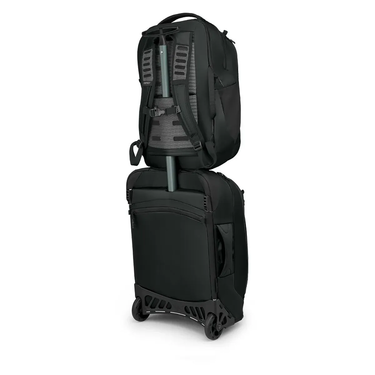 - Respaldo ventilado AirScape™ con abertura para acoplarla a una maleta