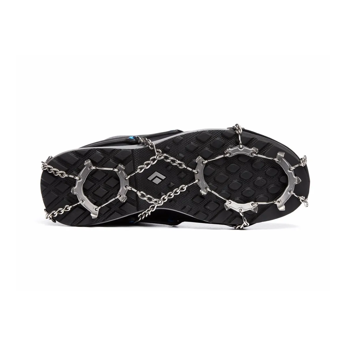- 14 puntas de acero inoxidable tratadas térmicamente con una longitud optimizada de 8 mm brindan una tracción superior en terrenos variados con nieve y hielo al tiempo que mantienen la estabilidad bajo los pies en rocas y superficies duras