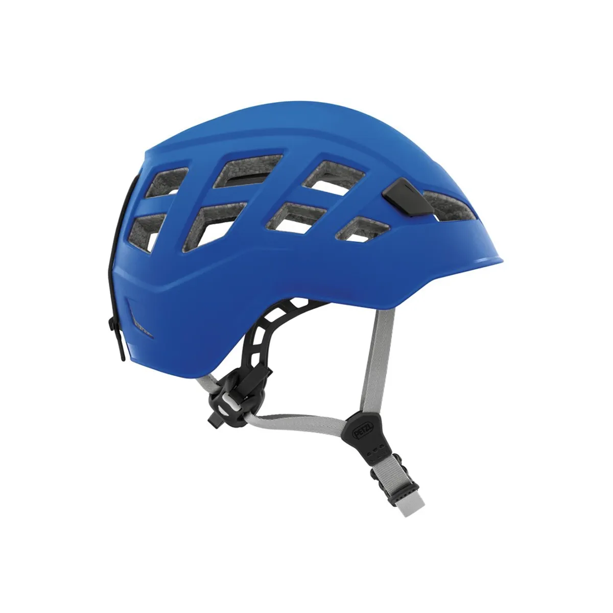- Diseño envolvente, más bajo en la zona posterior, para una protección óptima contra la caída de piedras y los impactos laterales, delanteros y posteriores (sello TOP AND SIDE PROTECTION de Petzl).