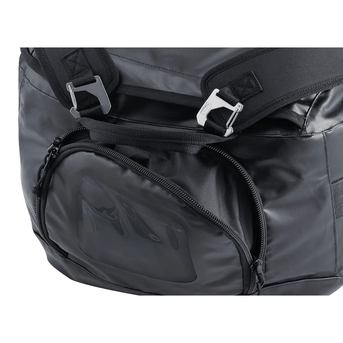 - Gran bolsillo lateral con cierre de cremallera para aislar el casco, el calzado y otros objetos del resto del material.