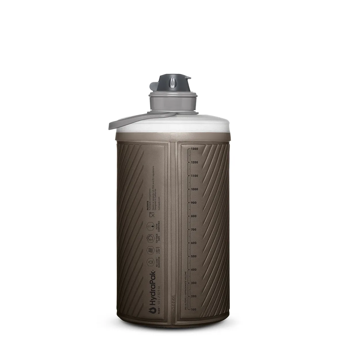Las botellas flexibles se actualizan. La Flux tiene la forma de una botella rígida, se comprime como un softflask y reduce su peso en un 50 %. Incluye una funda antipolvo y una boquilla giratoria para hidratarse en cualquier lugar, además de un asa para sujetar la botella de forma segura en la mano o en la mochila. La Flux se mantiene vertical como una botella rígida, pero al terminar tu bebida, se compacta hasta quedar en un bolsillo.