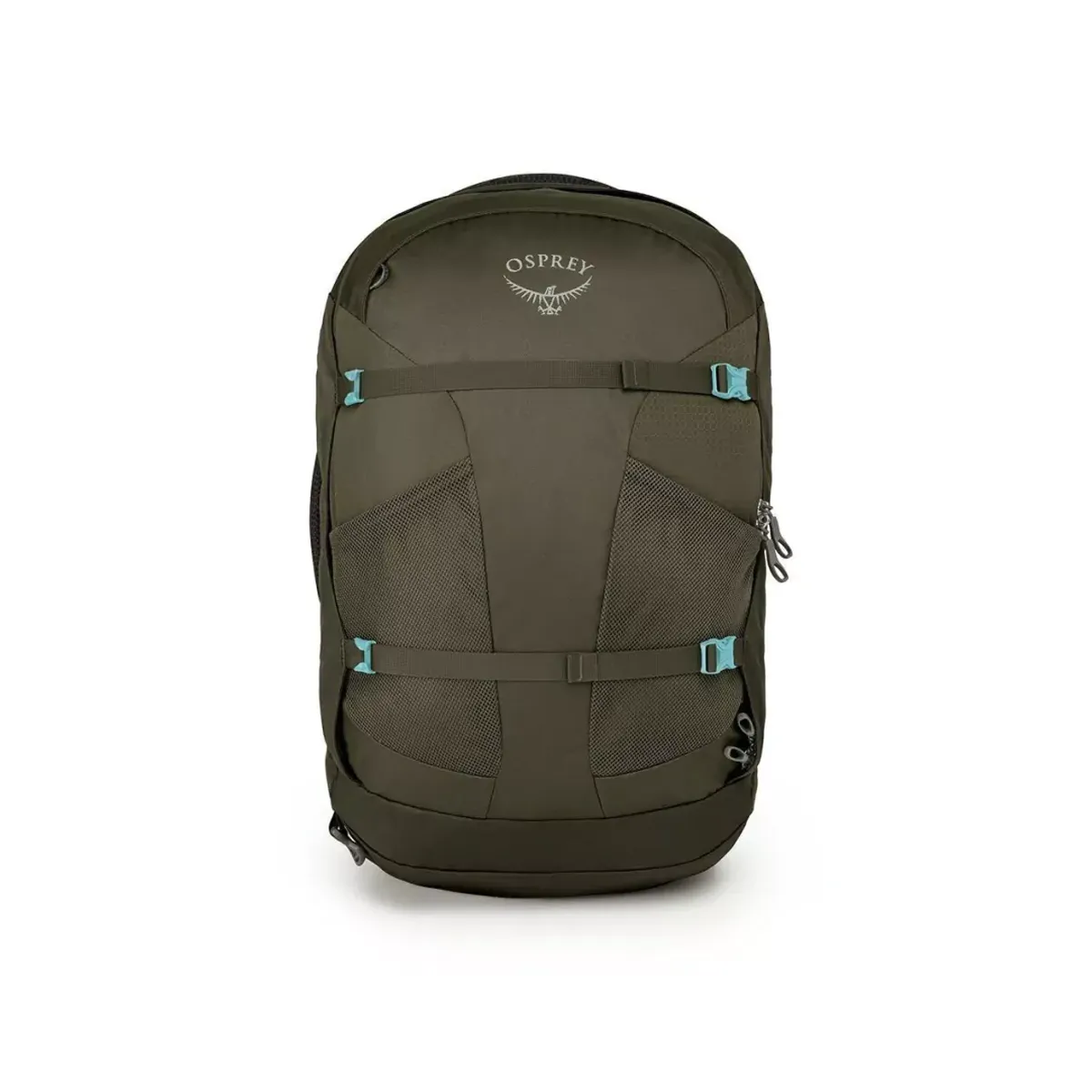 Liviana y optimizada, la serie Fairview es una mochila de viaje ideal para los trotamundos veloces. A pesar de su peso minimalista, estas mochilas repletas de características específicas para mujeres ofrecen muchas características de organización y especiales para viajes. El arnés y cinturón lumbar ocultos desaparecen para mayor seguridad cuando revisas tu bolso, y las telas duraderas ofrecen mayor protección. La cremallera en el panel grande proporciona un acceso conveniente al compartimento principal, los cierres asegurables con candado mantienen tus equipos seguros, las correas de compresión duales en el frente achican la mochila cuando transportas menos cosas y la funda acolchada para laptop/table mantiene tus equipos electrónicos seguros. El tamaño compacto de la Fairview 40 permite usarla como equipaje de mano en la mayoría de las aerolíneas. CARACTERÍSTICAS CLAVE CALCE CÓMODO Sea que viajes cerca o lejos, una mochila cómoda significa un problema menos. Hacemos uso de décadas de experiencia para garantizar un ajuste cómodo específico para cada género y para cada aventura. ARNÉS Y CINTURÓN LUMBAR OCULTOS El arnés Farpoint® & Fairview se guarda para mayor protección contra encargados de procesar equipajes malintencionados y se despliega rápidamente para cualquier sendero. LIVIANA Y RESISTENTE Las telas duraderas en áreas de alto desgaste se combinan con un diseño elegante para crear una mochila para viajes liviana y resistente que durará toda la vida. MOCHILA DESMONTABLE* La mochila pequeña desmontable brinda almacenamiento y organización adicionales ideales para viajes por el día o como equipaje de mano. Se puede anexar al arnés de la mochila principal para un transporte frontal seguro y un fácil acceso. *Farpoint/Fairview de 70L y 55L solamente CARACTERÍSTICAS Acceso al compartimiento principal a través del panel grande con cremallera Cierres asegurables con candado en la cremallera del compartimento principal Correas de compresión duales en el frente Bolsillos de malla duales en el frente Bolsillo sesgado protector con cremallera y termorrelieve Asas acolchadas superior y lateral Espaldar, arnés y cinturón lumbar ocultos con solapa trasera con cremallera para mayor protección Funda para laptop y tablet en compartimento asegurable con candado La dos cintas de compresión internas aseguran el contenido Bolsillo de malla interno con cremallera y solapa frontal Incluye correa para el hombro INFORMACIÓN DE CARGA SUSPENSIÓN DE BASTIDOR LIGHTWIRE El bastidor periférico Lightwire de 3.5mm transfiere eficientemente el peso de la carga, del arnés al cinturón lumbar La lámina Atilon distribuye la carga de todo el espaldar al bastidor periférico ESPALDAR, ARNÉS Y CINTURÓN LUMBAR DE MALLA OCULTOS CON REGULADOR EN EL REVERSO La espuma Atilon cubierta con malla lisa ofrece una superficie de contacto respirable y cómoda con un punto de apoyo para carga Correa ajustable para el pecho con silbato de rescate