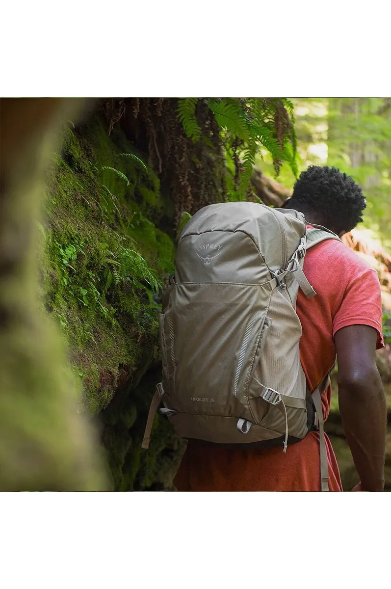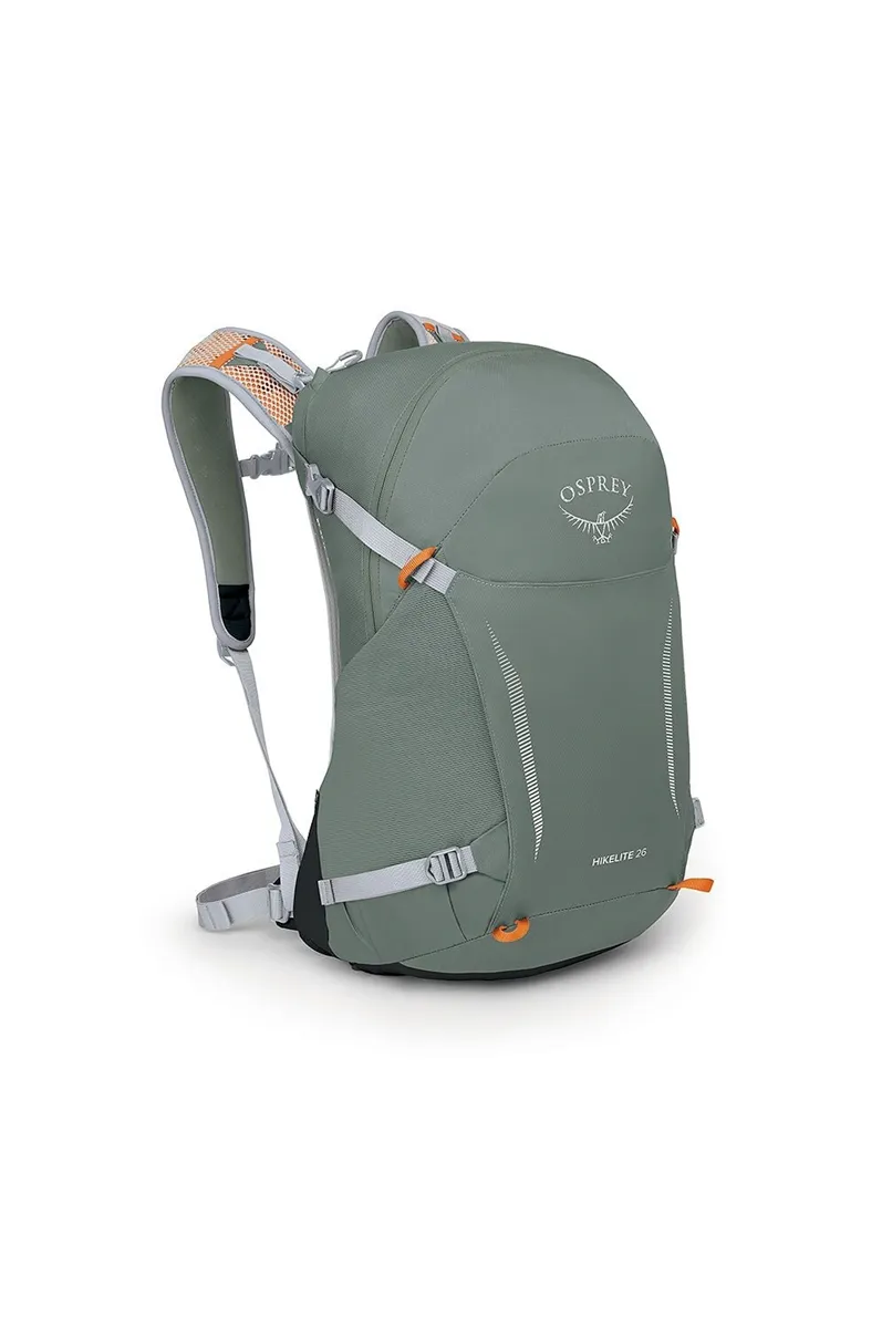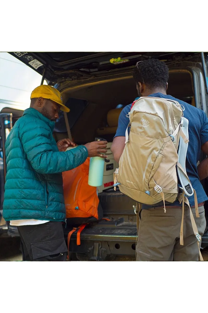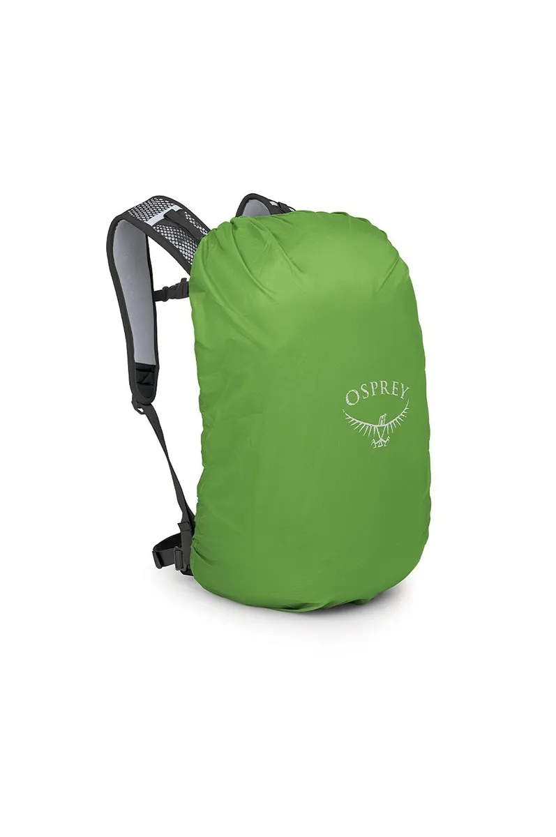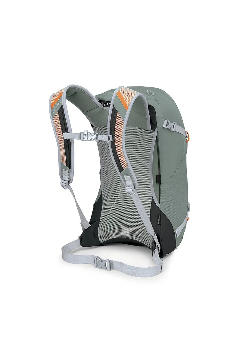 Características Diseño tradicional de cargador de panel con cómodo acceso con cremallera al compartimento principal Bolsillo frontal de tela con paneles elásticos para ayudar a controlar las sobrecargas. Incluye funda impermeable hecha con telas aprobadas por bluesign® y tratamientos DWR hechos sin PFAS, guardada en un bolsillo con cremallera en la base de la mochila. Los bolsillos laterales de malla elástica extra altos mantienen el contenido seguro El bolsillo externo con cremallera y clip para llaves mantiene a mano artículos pequeños y esenciales. Correas de compresión dobles en la parte superior con sujeción para bastones de trekking y correas de compresión inferiores para un mayor control de la carga. Doble presilla para bastones de trekking Funda de depósito interna con puerto para manguera en el panel posterior y Osprey Hydraclip para colgar fácilmente un depósito Correa de esternón ajustable con silbato de rescate Cinturón acolchado con un bolsillo con cremallera y un bolsillo abierto de malla elástica