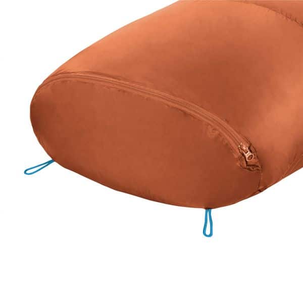 -Una cremallera de «doble vía» lateral y otra en la zona de los pies que permite abrir la parte inferior del saco, para regular la temperatura interior