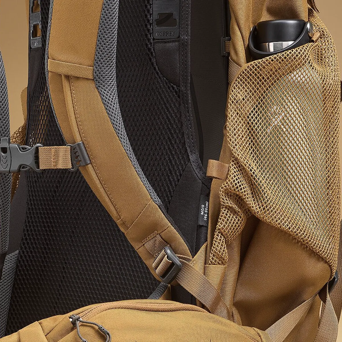 ROOK 50L Al igual que todas las mochilas Osprey, la Rook 50 cumple con lo prometido. Esta vez con características fácil de usar que se combinan para que tu próximo fin de semana en el bosque sea un éxito independientemente de tu experiencia. Cuenta con una ventilación fenomenal, un sistema apto y cómodo, un compartimento con cremallera para la bolsa de dormir, un cubremochila integrado y desmontable y bolsillos laterales en el cinturón lumbar. Las características refinadas que esperas de las mochilas Osprey. Aficionado o profesional, creemos que buscarás cualquier excusa para hacer senderismo con la Rook a tu lado. CARACTERÍSTICAS CLAVE DISEÑO LIVIANO Y SIMPLE El diseño liviano con materiales de calidad ofrece una solución práctica que se adapta a la perfección a cualquier sendero. SUSPENSIÓN AIRSPEED AJUSTABLE El espaldar tensionado se puede ajustar fácilmente para adaptarse a torsos de una amplia variedad de tamaños y permite la ventilación para reducir el sudor. El bastidor LightWire transfiere las cargas al cinturón lumbar para quitar la presión de los hombros del usuario y permitir un uso estable y cómodo. CUBREMOCHILA INTEGRADO Sabemos que esperas el mejor clima pero si hay un cambio repentino no te preocupes porque tiene un cubremochila integrado y desmontable que se guarda en su propio bolsillo cuando mejora el clima. CARACTERÍSTICAS Espaldar AirSpeed cómodo y bien ventilado con sistema de ajuste al torso intuitivo Tapa superior fija con bolsillo con cremallera Osprey Daylite compatible con puntos de sujeción con cordón en el panel frontal Correas de compresión dobles arriba y abajo Compartimiento con cremallera para colchoneta con separador flotante Correas para colchoneta desmontables Bolsillos laterales dobles de malla Cinturón lumbar con bolsillos de cremallera Cubremochila desmontable integrado Funda para bolsa hidratación interna INFORMACIÓN DE CARGA SUSPENSIÓN AIRSPEED El bastidor periférico Lightwire de 4 mm transfiere efectivamente el peso de la carga del arnés al cinturón lumbar. ESPALDAR AIRSPEED Espaldar de malla 3D tensionada y transpirable con ventilación lateral ARNÉS El arnés de malla acolchada suave sin bordes se desliza sobre la suspensión AirSpeed y ofrece una capacidad de ajuste de 4" para garantizar un excelente calce Correa ajustable para el pecho con silbato de rescate CINTURÓN LUMBAR La malla suave acolchada sin bordes ofrece una suave superficie de contacto respirable y un buen soporte para las cargas grandes