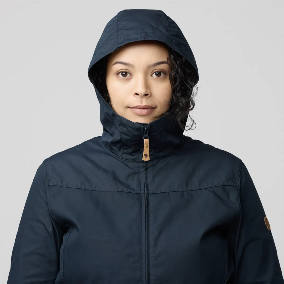 - Chaqueta práctica para uso diario con capucha fija.