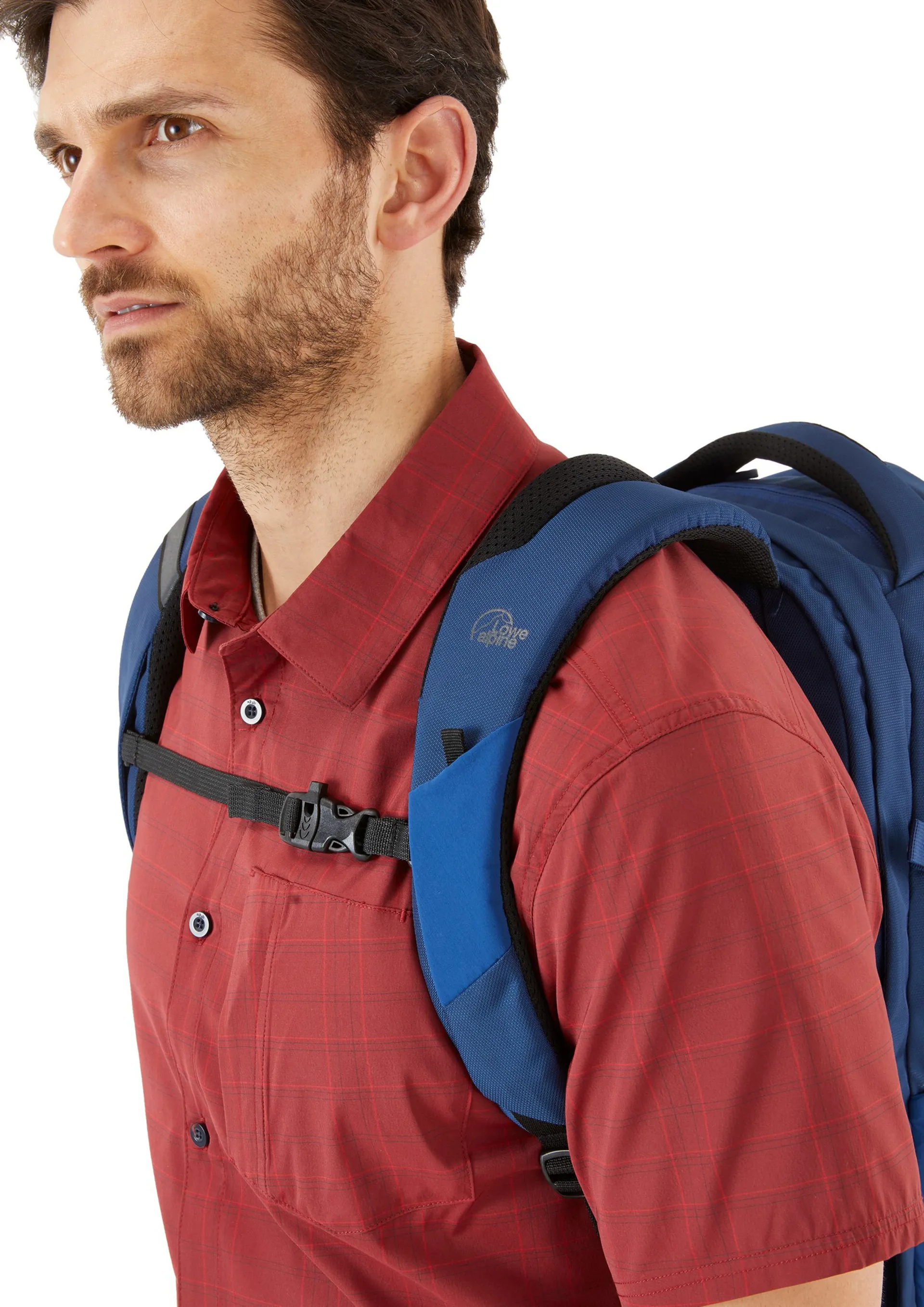 • Bolsillo superior con forro suave para proteger los anteojos de sol y el teléfono