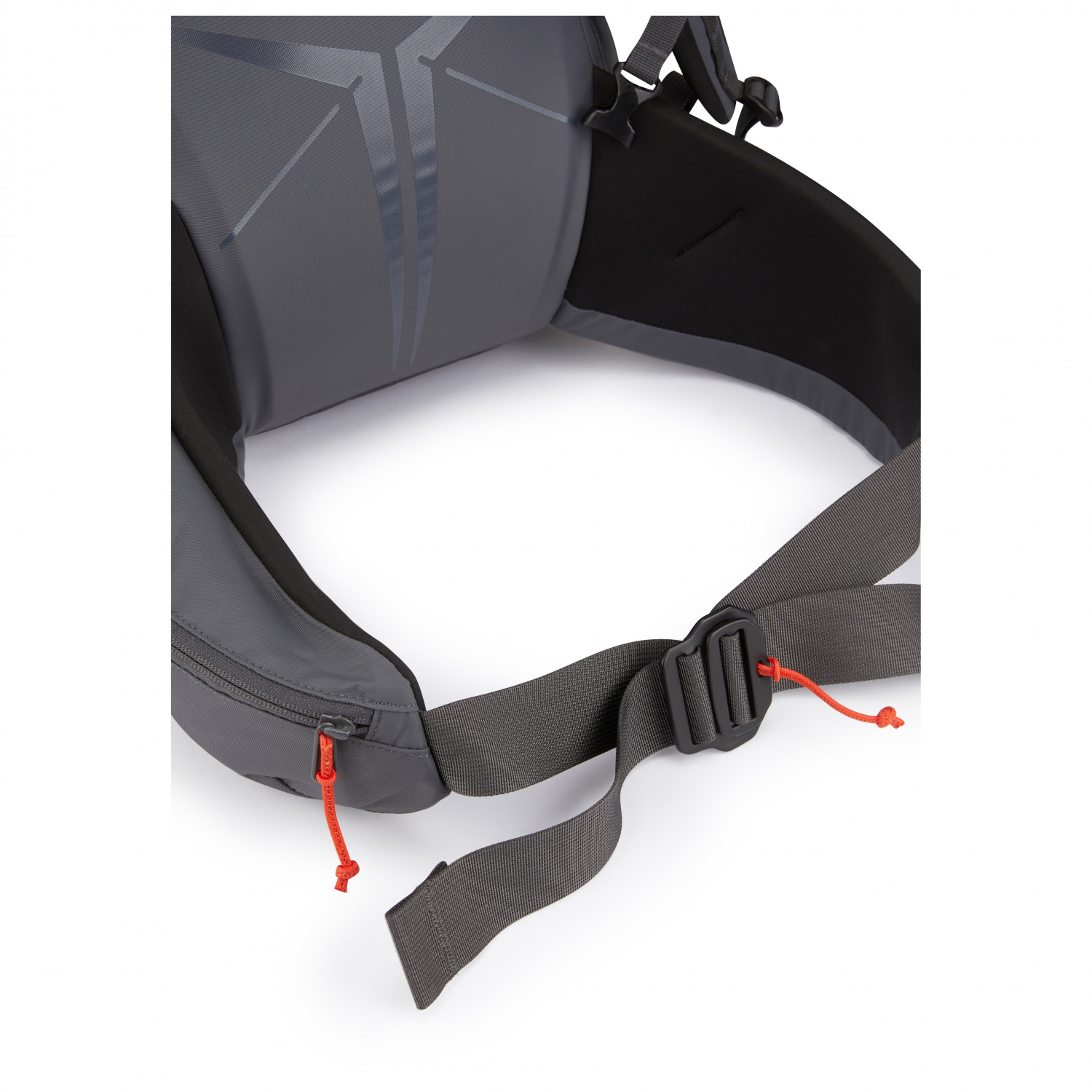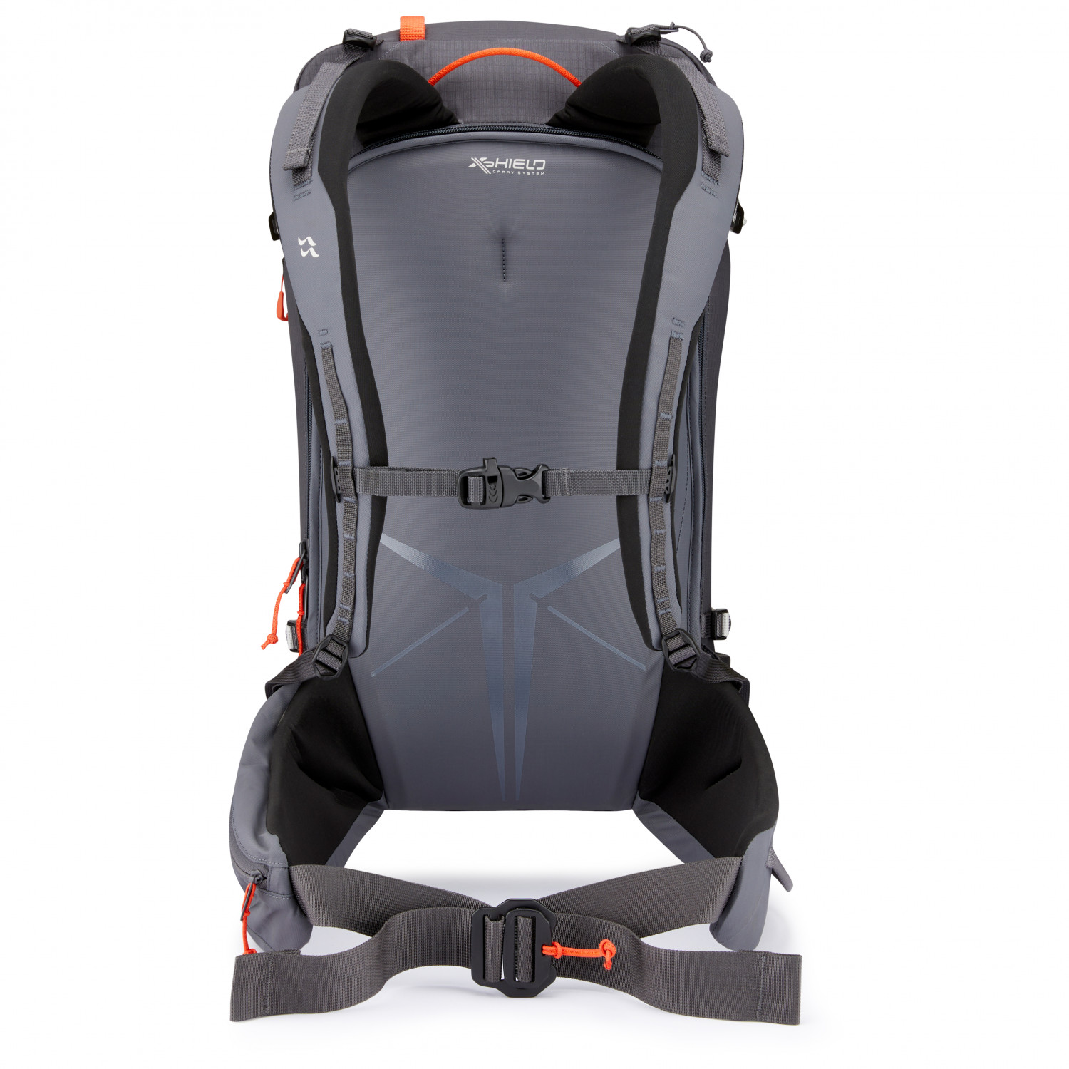Hemos reforzado nuestro nailon Cordura ya resistente conEspectros®Ripstop y unHidroescudoAcabado resistente al agua. Esta construcción hace que la Khroma 30 sea altamente resistente a la abrasión, los desgarros y la intemperie. Incorpora el sistema de transporte X-SHEILD™, que la mantiene cerca de la espalda para mayor libertad de movimiento tanto en subidas como en bajadas, brindándote total estabilidad en descensos técnicos. El cinturón lumbar ancho y acolchado se ajusta de forma cómoda y segura, con una presilla para material en un lado y un bolsillo grande en el otro, perfecto para refrigerios, un GPS y una brújula. Estilizada, discreta y cómoda, la Khroma 30 es perfecta para ambiciosas aventuras de esquí de travesía.