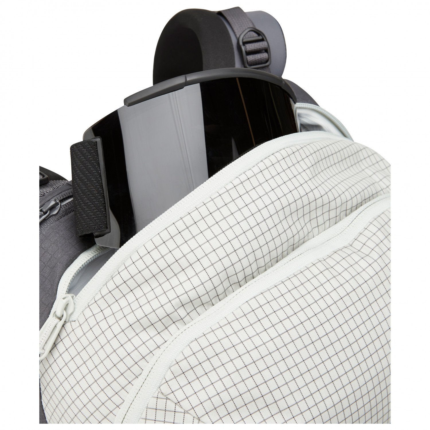 Estable y segura para subir y bajar, con portamateriales, fijación para piolet y organización de equipo, la Khroma 30 es ideal para quienes buscan pistas nuevas en terrenos accidentados. La Khroma 30 puede transportar tanto esquís como una tabla de snowboard con opciones de transporte diagonal o en forma de A. Diseñada para facilitar tu día en la pista de pieles, cuenta con acceso en el panel trasero para acceder fácilmente a todo tu equipo, facilitando las difíciles transiciones de pieles a crampones y esquís. El portacasco desmontable fija el casco al exterior de la mochila, ofreciendo mayor volumen para tu equipo en el interior. Todas las cremalleras están diseñadas con tiradores fáciles de usar con guantes para un acceso rápido en cumbres azotadas por el viento.