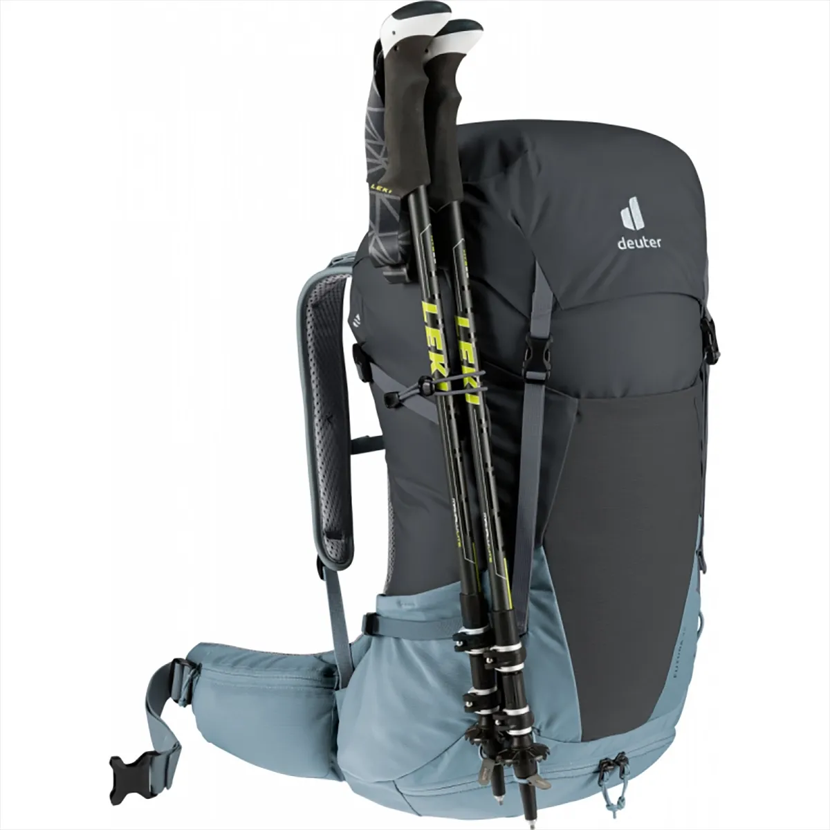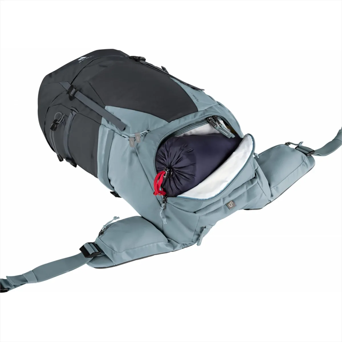 Sistema de confort de aire 50% reciclado libre de PFAS MATERIAL: 210D PA RECICLADO SOSTENIBLE: el 50 % del hilo se utiliza a partir de materias primas recicladas. El material principal de la serie Futura consiste en material certificado bluesign. 600D PSE Tejido con hilo de poliester de 600 denier y con un grueso revestimiento de PU, este tejido ligero y resistente al desgarro es muy versatil. Siempre que se trate de mantener el peso de la mochila lo mas bajo posible con un estres moderado, esta es la solucion ideal. La version "deuter Super Polytex BS" se produce de acuerdo con el estricto estandar bluesign. Sus caracteristicas y factores de estres son identicos.