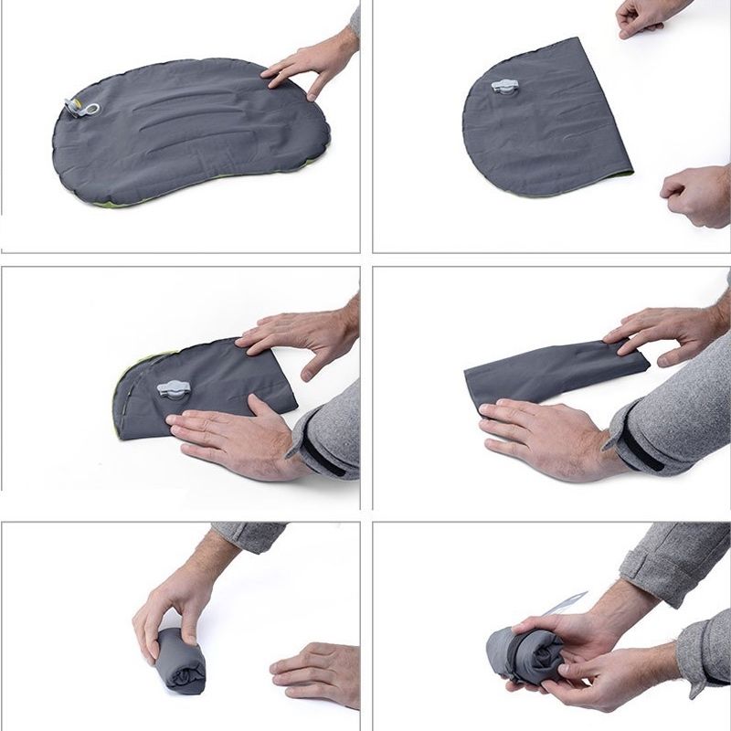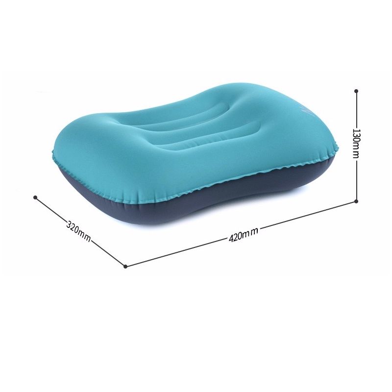 Almohada inflable suave al tacto. Por su tamaño reducido y fácil operación es ideal para viajes en micro, avión o para llevar de campamento.