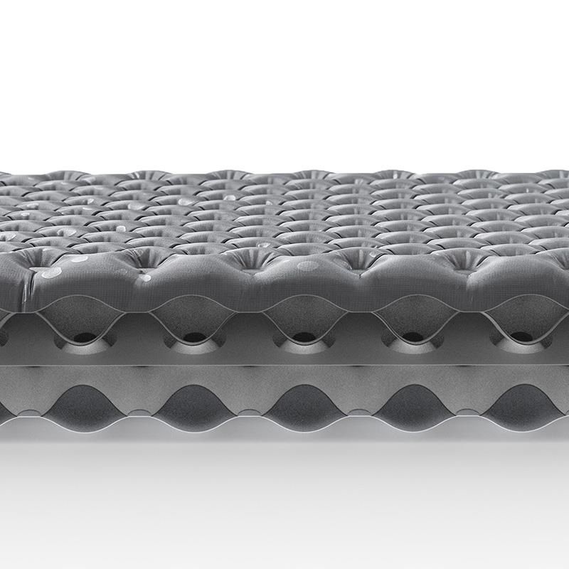 Tiene un alto coeficiente de resistencia térmica (valor R), que se aumenta añadiendo una lámina de aluminio a cada una de las cinco capas que componen el colchón. Esto separa mejor las cámaras de aire individuales, reduce la pérdida de calor y mejora significativamente el confort térmico durante el uso.
