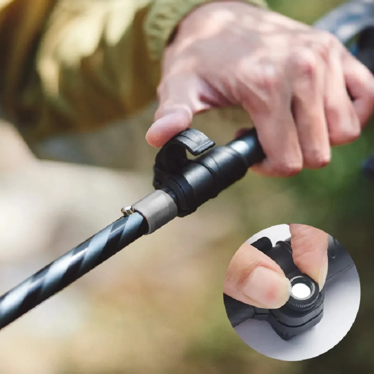 • Incluye una roseta que a su vez permiten asegurar las otras dos secciones del bastón cuando está plegado.