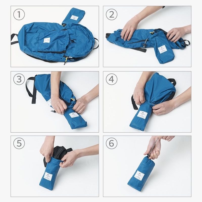 Mochila plegable de tela de nylon 30D recubierto de silicona y resistente al agua. De fácil almacenado, esta mochila es duradera y liviana. Es ideal para llevar dentro de la valija en tu próximo viaje.