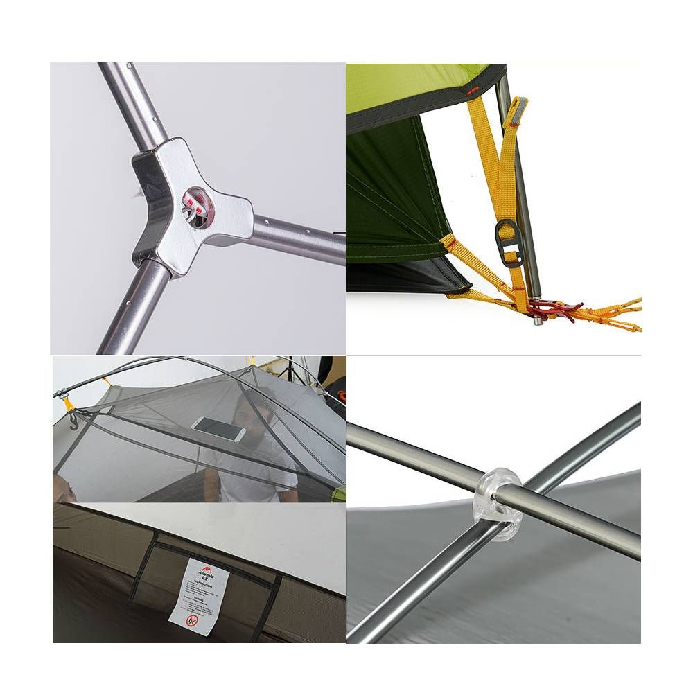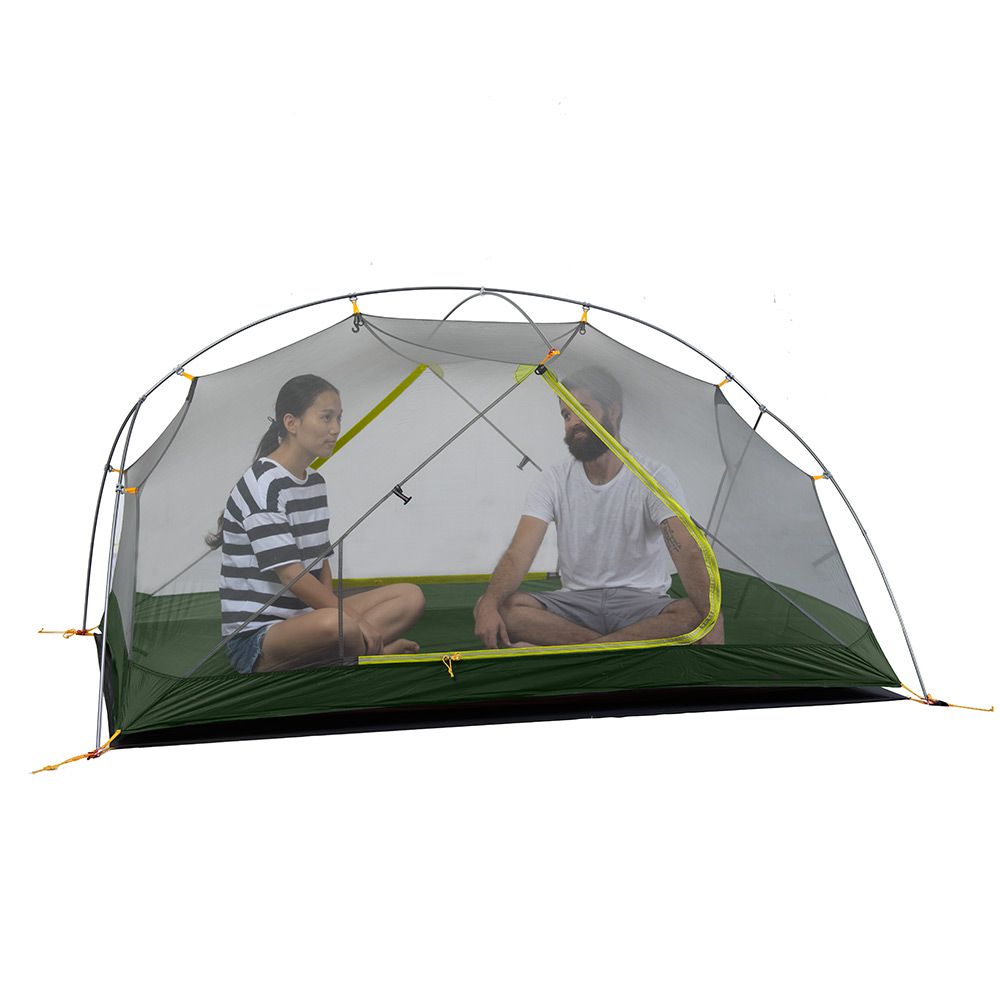 Mongar utiliza dos varillas de aleación de aluminio 7001 de la carpa para formar su esqueleto y un mesh de silicio recubierta de nylon 20D, esto se traduce en la mejor relación resistencia / peso. Ya sea que esté caminando o en una aventura de escalada, puede proporcionarle un alto grado de confort, seguridad y sentido del espacio.