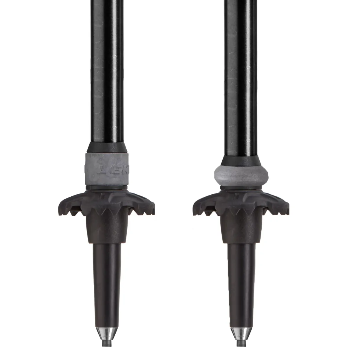 • Sistema de suspensión dinámica: El Dynamic Suspension System es una construcción que absorbe vibraciones, fabricada con material elastomérico. Según un estudio de la Universidad de Tübingen, reduce la fuerza de impacto en aproximadamente un 40%, aliviando así la musculatura, las articulaciones y los tendones. (Es importante usar esta punta siempre con una roseta y, bajo ninguna circunstancia, es adecuada para su uso en nieve)