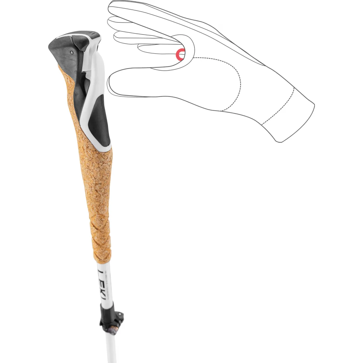 • Sistema Shark Permite una óptima transferencia de energía, gracias a la conexión directa entre la mano y el bastón. Con un clic rápido es posible enganchar y desenganchar el sistema fácilmente, y su liberación de seguridad protege contra posibles lesiones. Todas las correas y guantes Shark son compatibles con cualquier bastón Shark.