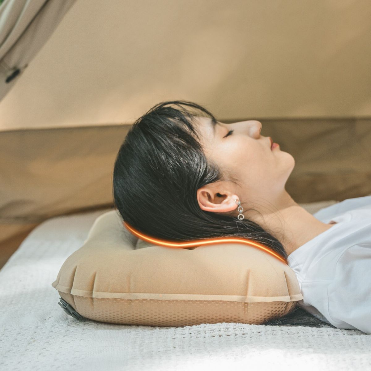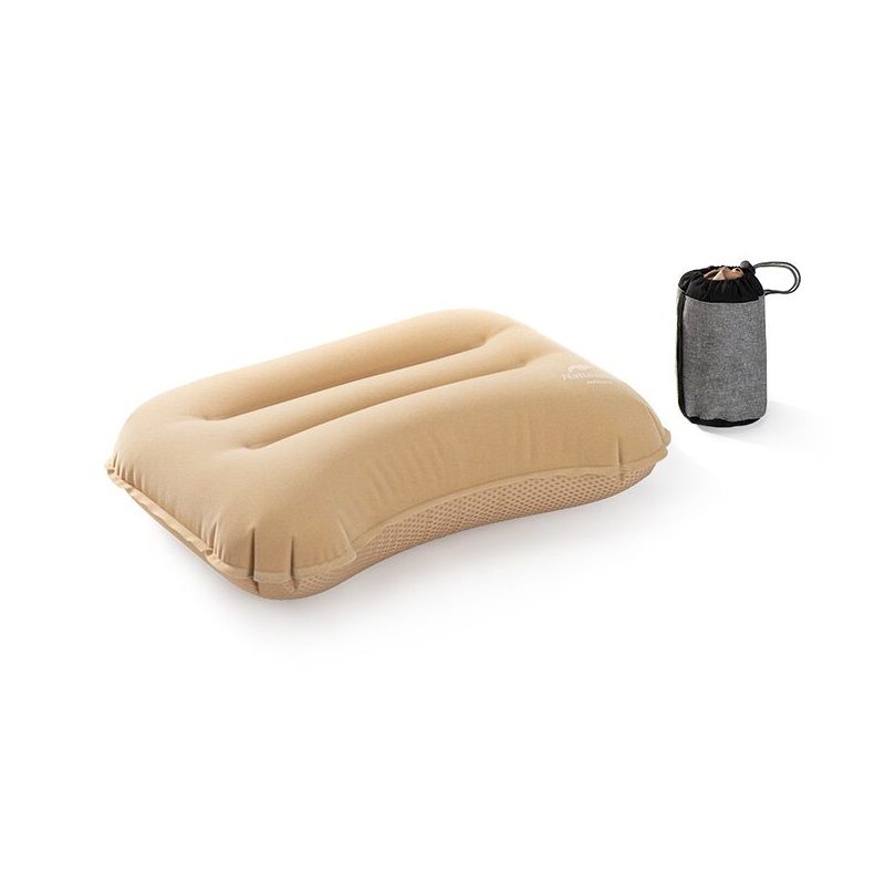 Almohada inflable de Naturehike que puede alcanzar los 10 cm de grosor con un material agradable para la piel para una máxima comodidad. Se puede almacenar en la bolsa de forma compacta.