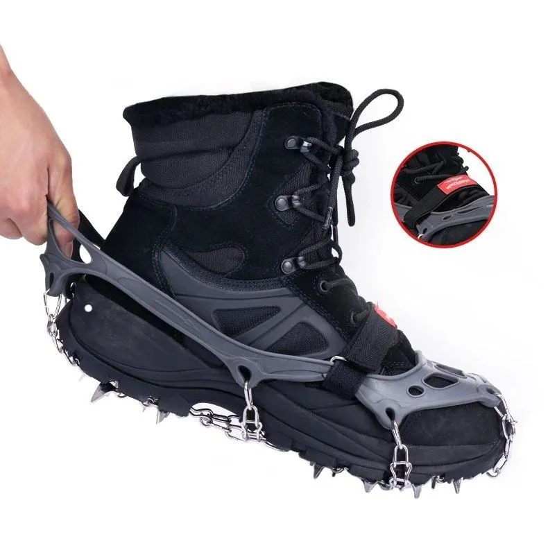 Los grampones son fáciles de poner y quitar. Son cómodos de llevar y se sujetan firmemente al calzado. Las 19 puntas son una gran protección contra caídas y resbalones en superficies resbaladizas.