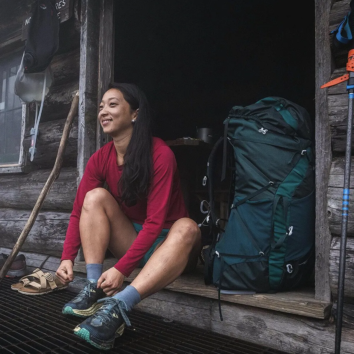 Elige la Eja 48 y llévate el tamaño mediano ultraligero perfecto. Cuenta con mucho espacio para acompañarte en caminatas largas, pero no con demasiado para evitar la tentación de llevar más de lo necesario. Las viajeras con más experiencia valorarán la mayor comodidad y ventilación del sector —sin nada de peso extra—, en una mochila perfecta para rutas de largo recorrido y con muy poco peso. ¿Necesitas reducir el peso? En ese caso, sustituye la tapa regulable extraíble por el FlapJacket integrado. Además, nuestra suspensión AirSpeed evita que pases calor, ya que permite una excelente circulación de aire entre la espalda y la mochila para que cada kilómetro sea tan cómodo como el anterior. Fabricada con materiales 100 % reciclados.