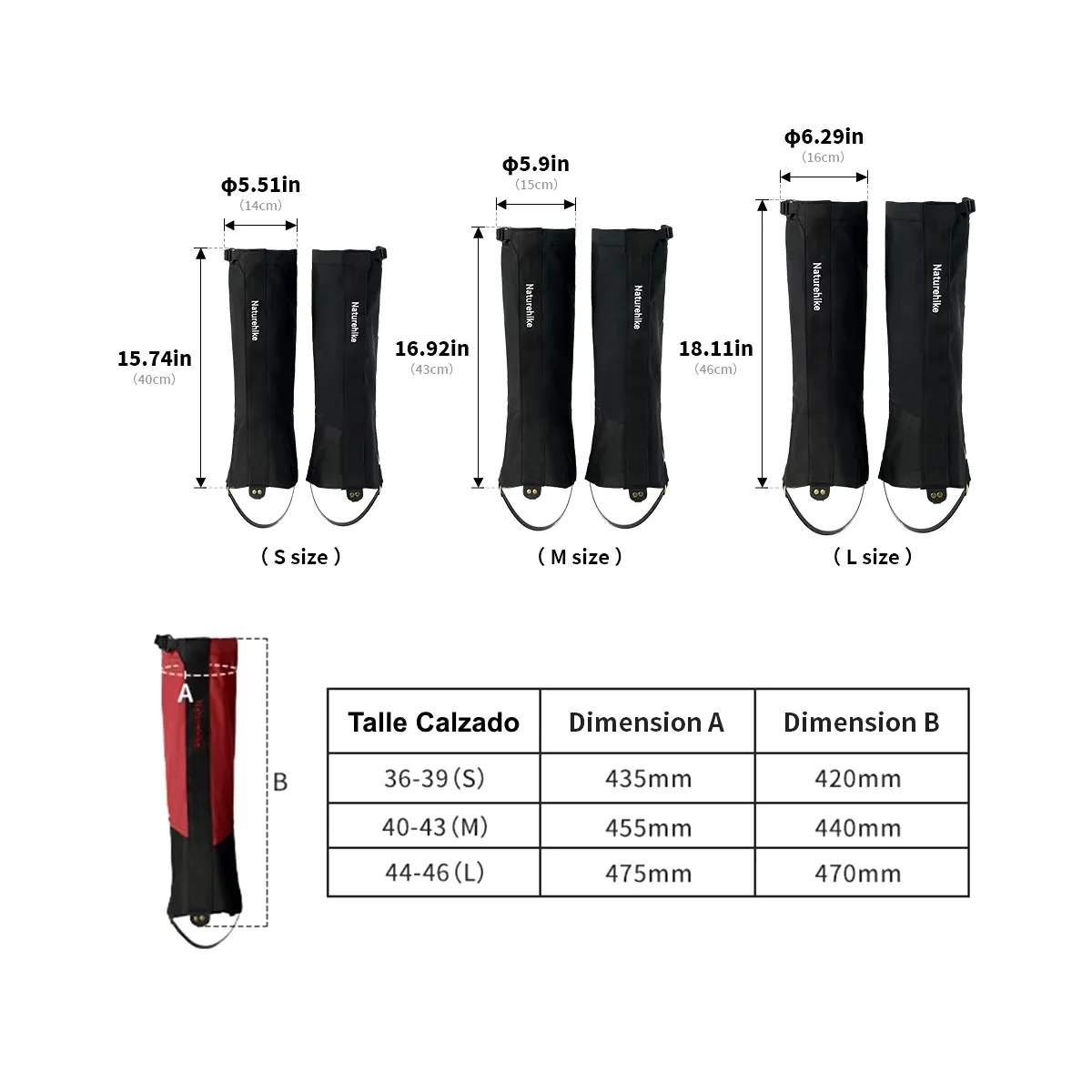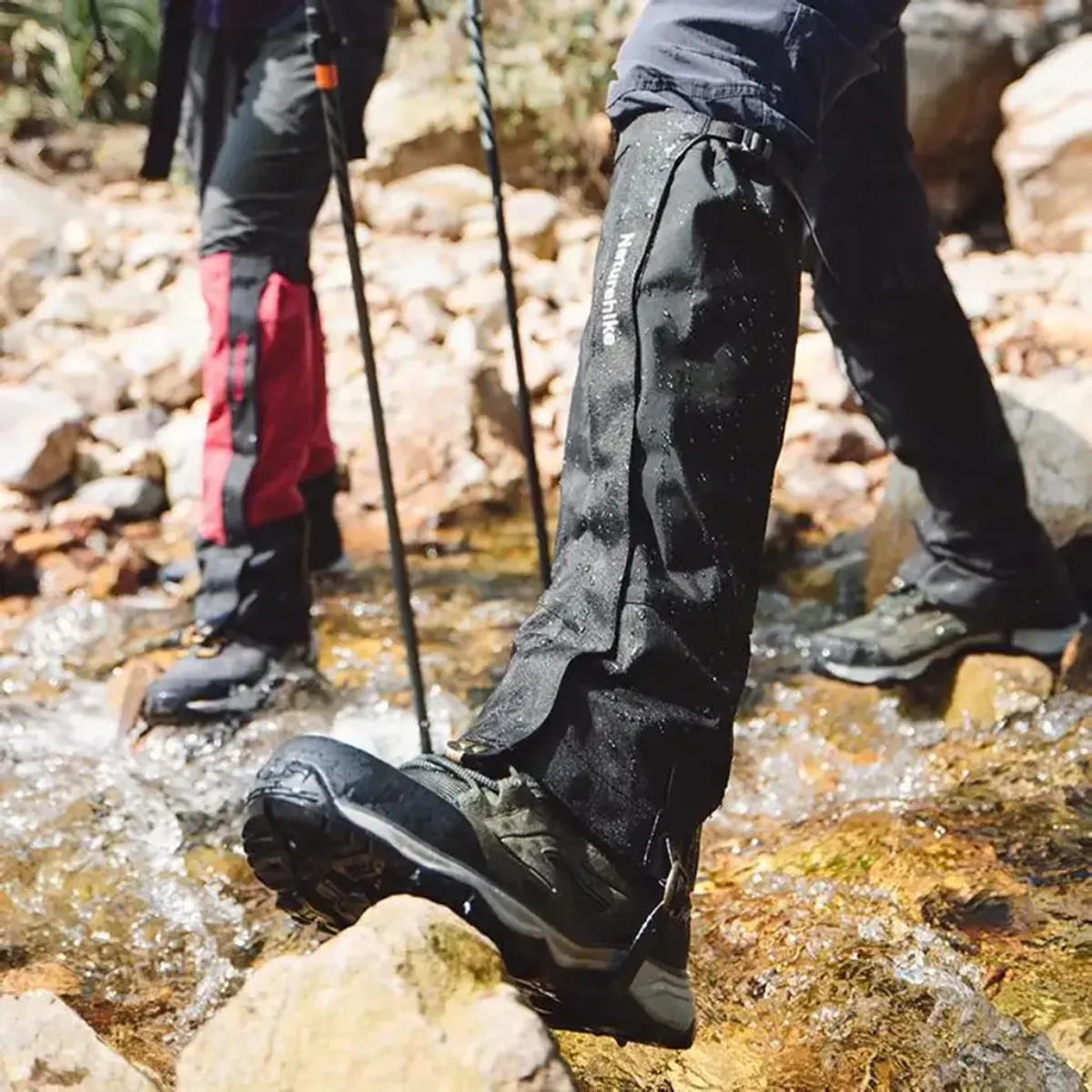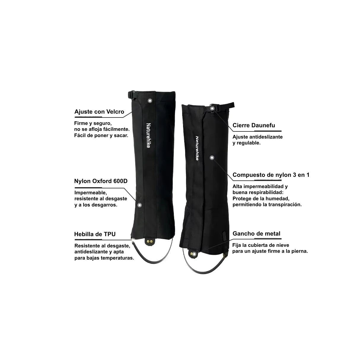 La Polaina Naturehike Snow Leopard es resistente a la abrasión e impermeable, diseñada para proteger la bota, el borde del pantalón y la pantorrilla de piedras, arena e insectos en todo tipo de terrenos, incluso en nieve. Fabricada en Nylon 600D Oxford, soporta el desgaste y la humedad con una columna de agua de 10.000 mm, gracias a su membrana de PU que también permite la transpiración.