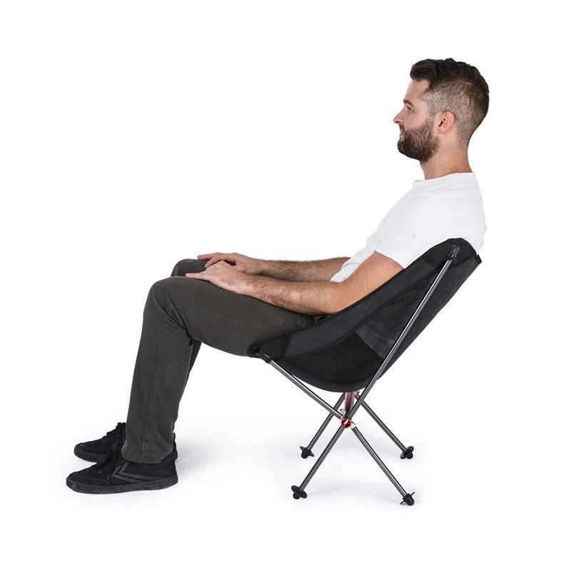 Con su forma lunar y su estructura de aleación de aluminio adaptada, esta silla de camping le ofrece una comodidad perfecta. Ya sea después de hacer senderismo, ir a ver un partido de fútbol o simplemente para relajarse.