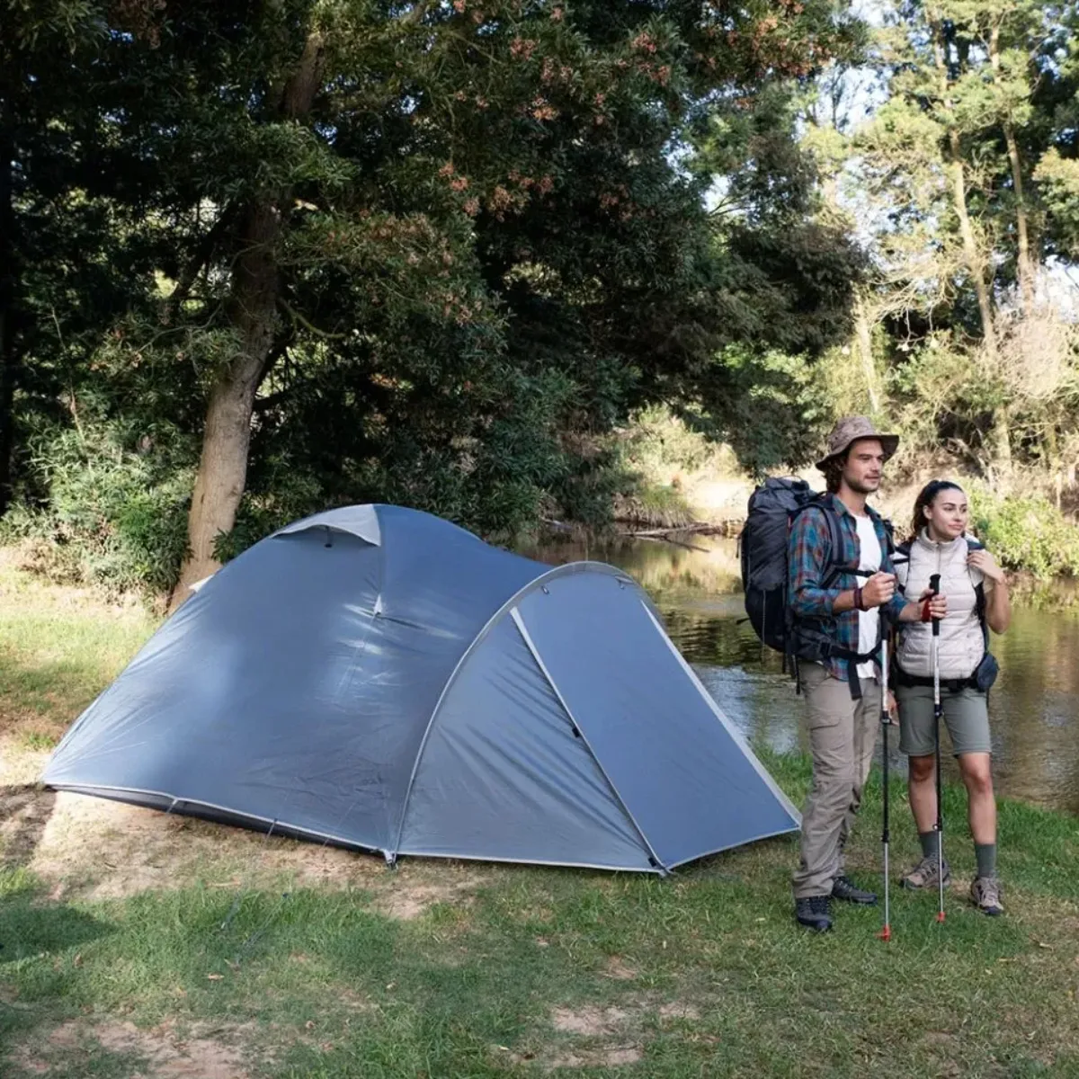 Carpa práctica y confiable, pensada para viajeros y amantes del aire libre. Su diseño espacioso permite alojar cómodamente a tres o cuatro personas. En el interior cuenta con un gancho para colgar una linterna, ideal para las noches de campamento.