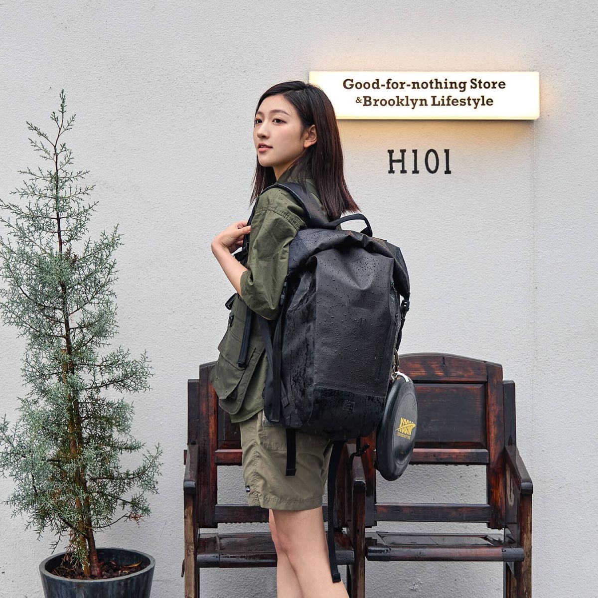 Parte frontal de la mochila: diseno TPU 200D mate de doble cara con material impermeable IPX6