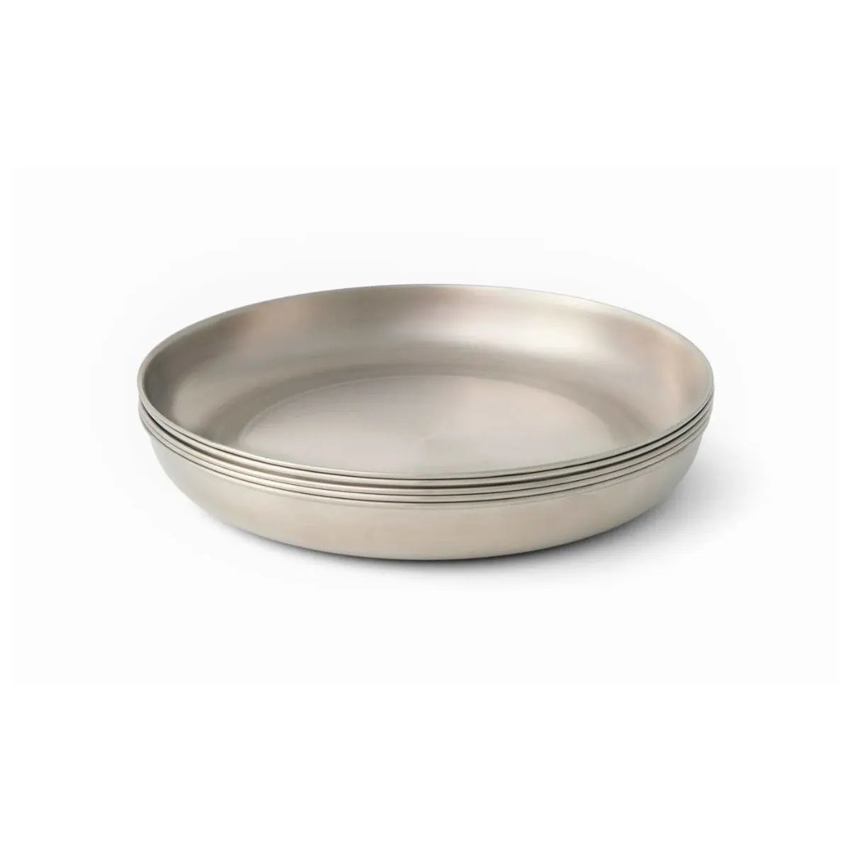 La superficie de acero inoxidable pulido del plato Detour no solo lo hace súper duradero, sino también fácil de limpiar. El diseño innovador del plato permite apilarlo fácilmente, mientras que la curva entre la base y las paredes laterales combina perfectamente con las cucharas Sea to Summit para que puedas disfrutar hasta el último bocado. El inserto de goma de silicona en la base significa que los platos no se deslizarán ni vibrarán durante el transporte y el generoso volumen de 1000 ml (34 fl oz) es ideal para comidas abundantes y campistas hambrientos.