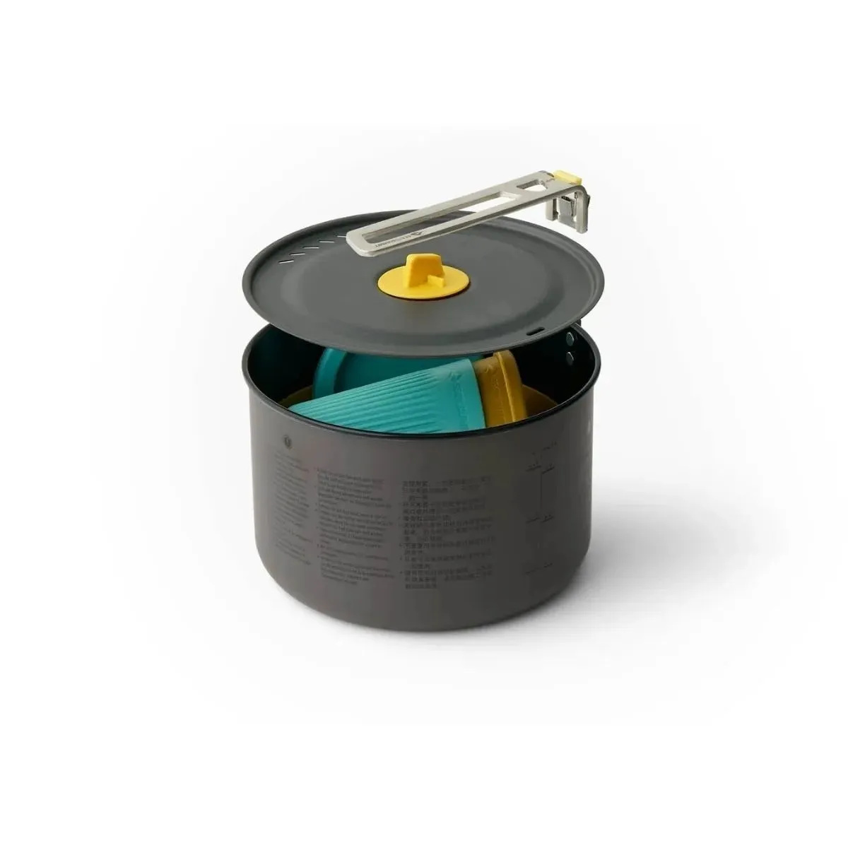 El juego de cocina ultraligero de una olla Frontier incluye una olla Frontier de 2 l combinada con nuestros cuencos y tazas ergonómicos de la colección Passage para formar la base de la mejor configuración de cocina de campamento liviana disponible. La olla Frontier de 2 l utiliza una aleación de aluminio anodizado duro de la más alta calidad para una transferencia de calor eficiente y un revestimiento antiadherente de cerámica, orificios de colador inteligentes en la tapa de la olla y un LidKeep que le permite sujetar la tapa al costado de la olla. Un mango Click-Safe proporciona un agarre sólido que se puede invertir para mantener todo el juego de cocina en su lugar. También incluye los cuencos y tazas Passage de grado alimenticio de la UE que brindan una vajilla ultraduradera para resistir cualquier aventura.