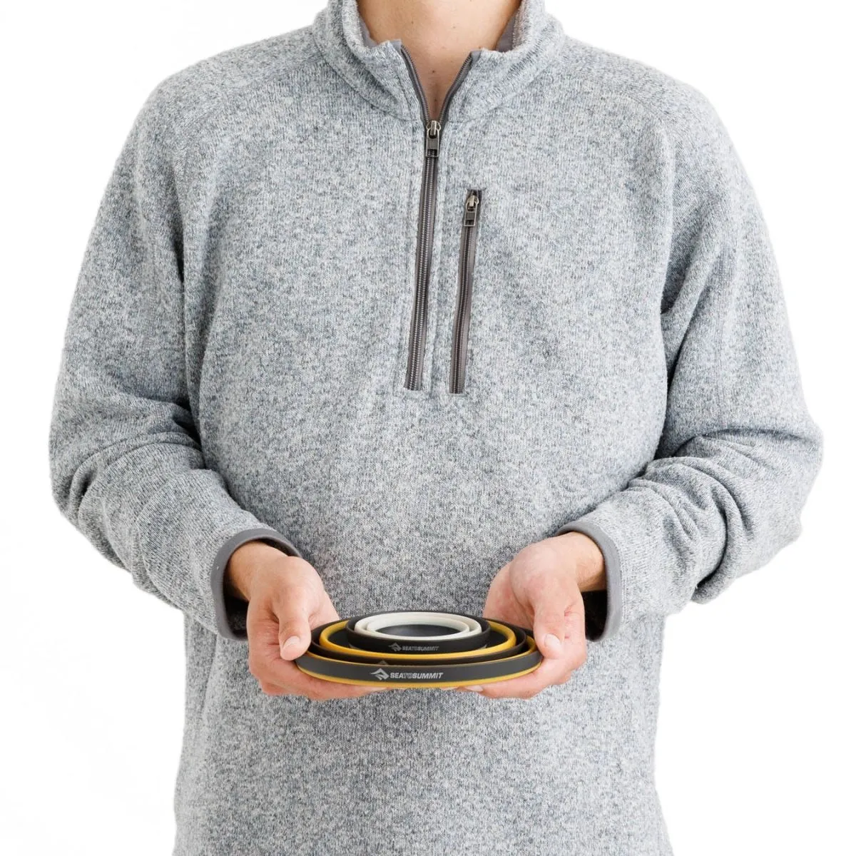 Diseñados para encajar juntos, el cuenco grande, el cuenco mediano y la taza se pliegan para ocupar muy poco espacio en tu mochila, y su nueva construcción ligera significa que tampoco añadirán mucho peso a tu mochila. A pesar de haber perdido gramos, se ha mejorado su funcionalidad. Cada cuenco ahora tiene un borde para que puedas sujetarlo de forma segura y una curva entre la base y las paredes laterales que combina con las cucharas Sea to Summit. La taza tiene un anillo central además del borde superior para que sea más fácil de agarrar. Y, viniendo del pionero en vajillas plegables para campamento, sabes que puedes confiar en materiales de primera calidad de grado alimenticio de la UE.