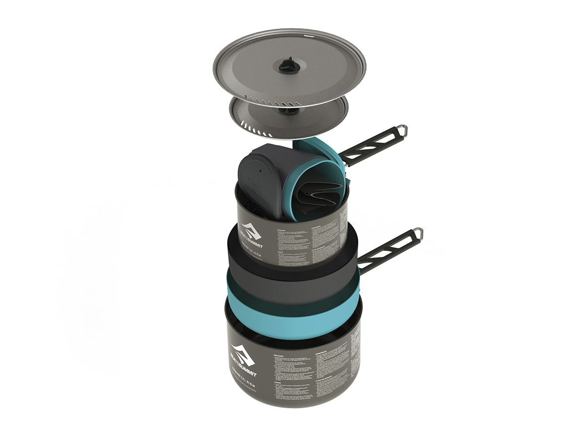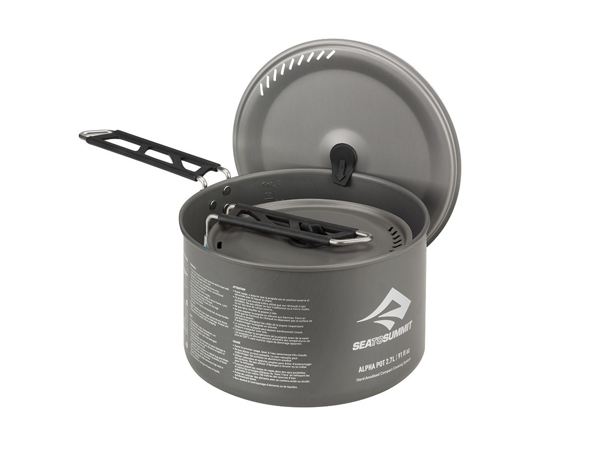 Tanto las Alpha Pans como las Alpha Pots estan hechas de una aleacion premium anodizada dura de alta especificacion, lo que les permite ser mas delgadas y livianas, pero aun asi extremadamente fuertes y duraderas. Una base arenada agrega textura haciendolos mas estables en una estufa de campamento.