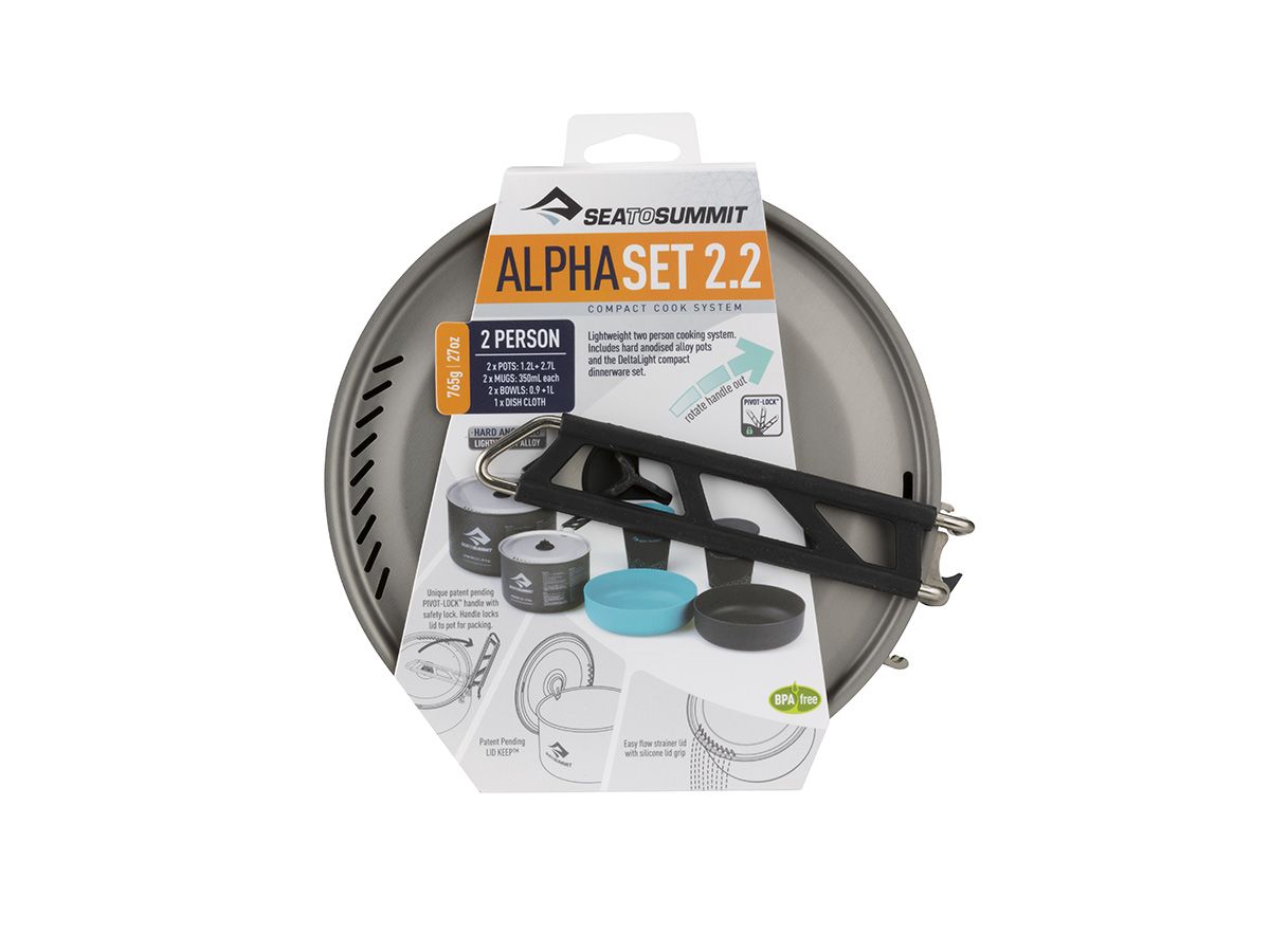 El Alpha Set 2.2 incluye: un Alpha Pot de 2.7L, un Alpha Pot de 1.2L, un Deltalight Bowl de 1L, un Deltalight Bowl de 900ml y dos tazas de insulina Deltalite de 350ml.