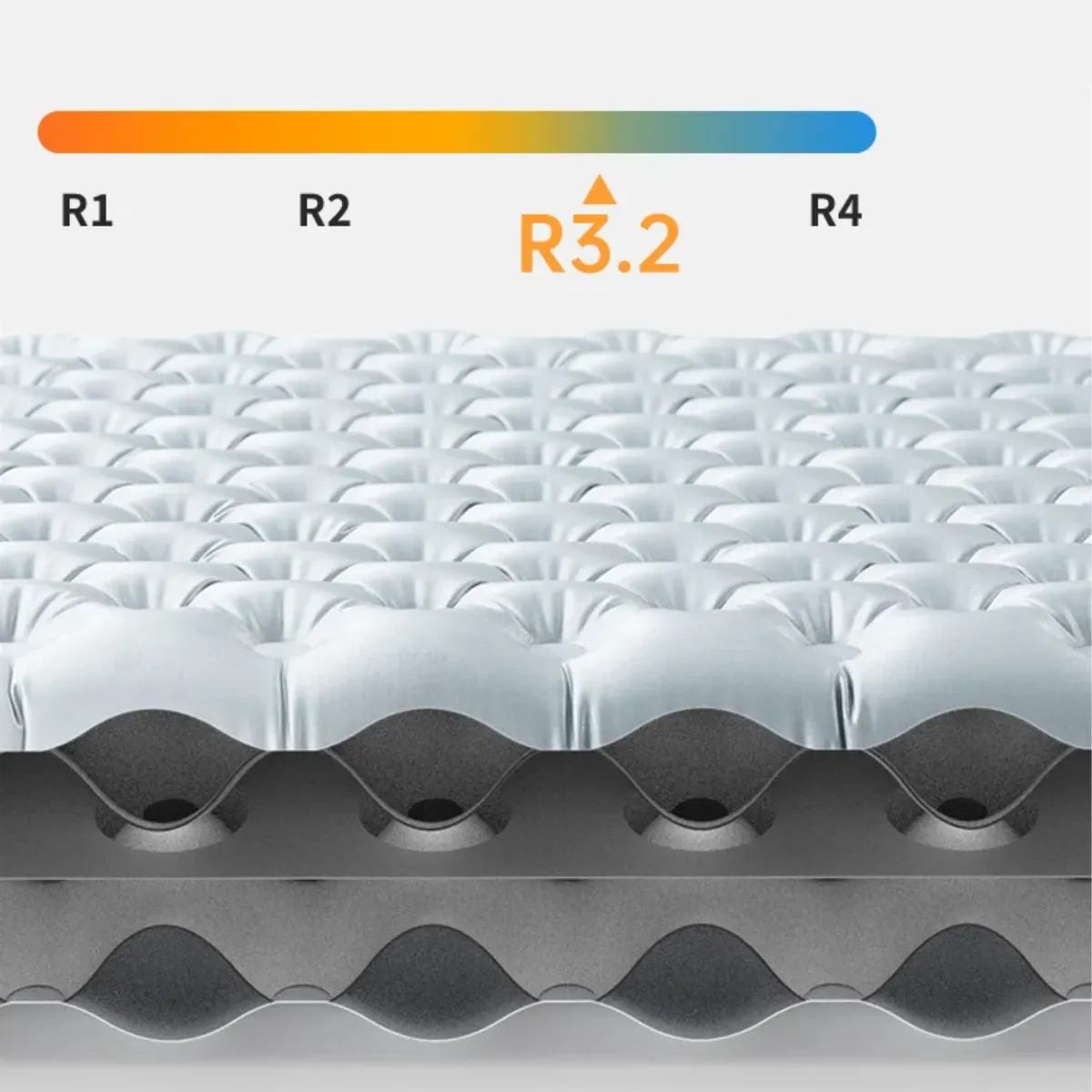 Colchoneta inflable ultraliviana de la serie TuYe, diseñada para brindar una comodidad inigualable sin sumar peso innecesario. Esta colchoneta de alta gama cuenta con un valor R de 3.2 y una temperatura mínima de uso de -5 °C, lo que garantiza abrigo incluso en condiciones frías.