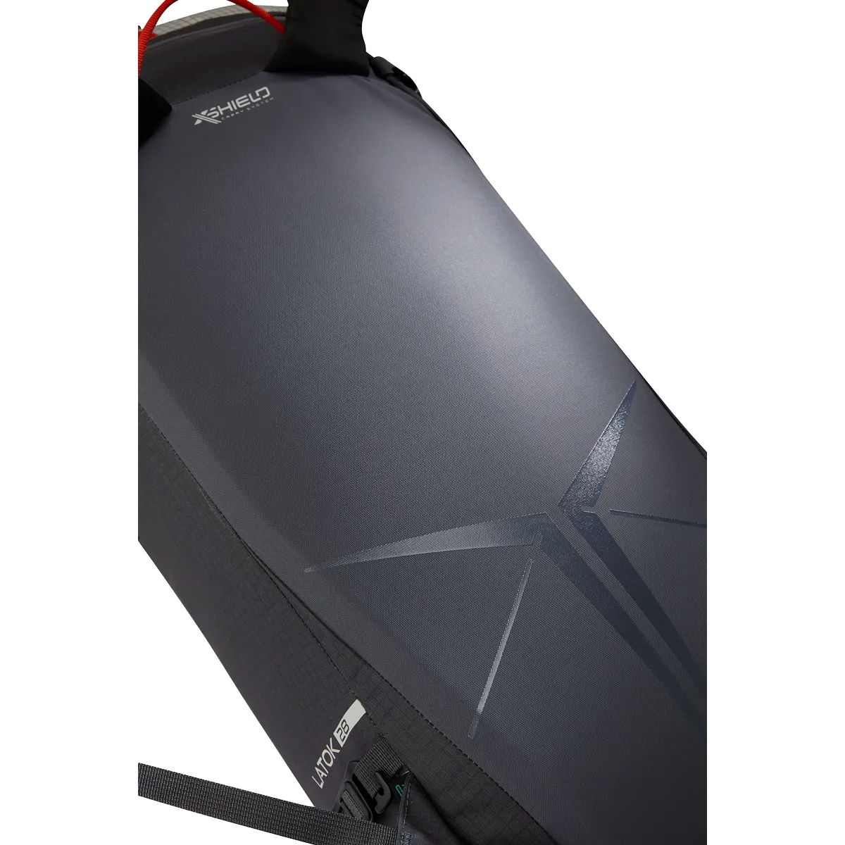 El Escudo X™El sistema de espalda está diseñado para ajustarse a la espalda y brindarte total libertad de movimiento, con correas de espuma de doble densidad para una mayor movilidad. Con un acolchado más grueso en la parte superior para mayor comodidad y más fino en la parte inferior, las correas se adaptan al cuerpo y se mueven contigo. La entrada superior enrollable es altamente impermeable, resistente y fácil de colocar, brindándote espacio para cargar todo lo necesario. Además, una amplia gama de accesorios te permite tener el equipo a mano. Desde alpinismo ambicioso hasta esquí de montaña, la Latok 28 está diseñada para ascensos rápidos donde cada gramo cuenta.