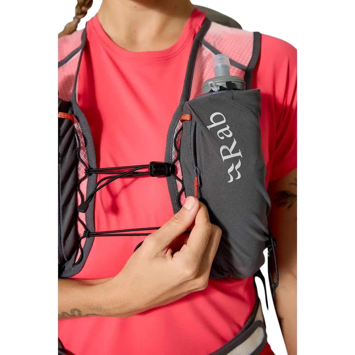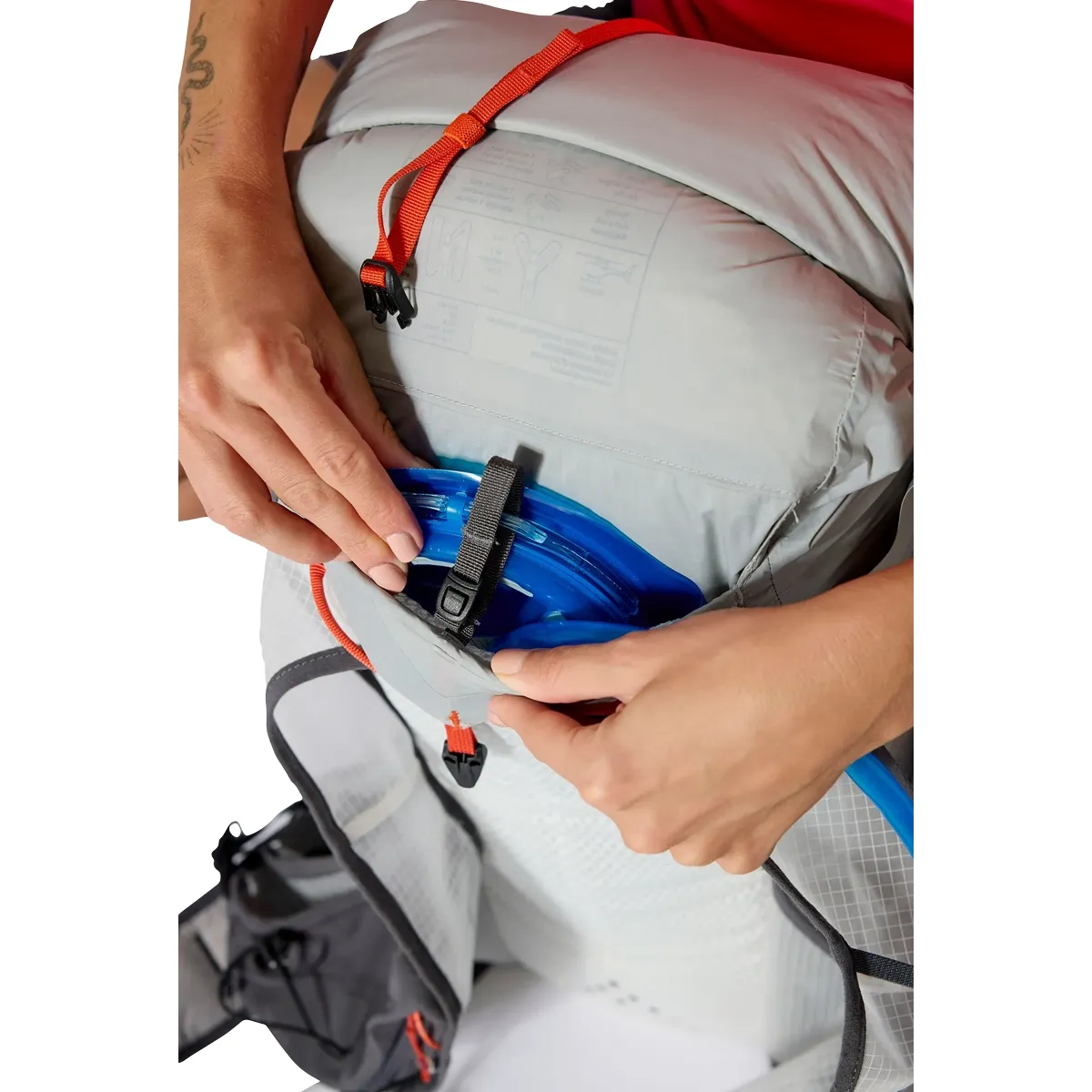 - Almacenamiento de acceso rápido en bolsillos con cierre en el cinturón, además de espacio para frascos blandos y un depósito de agua para hidratarse mientras viaja.