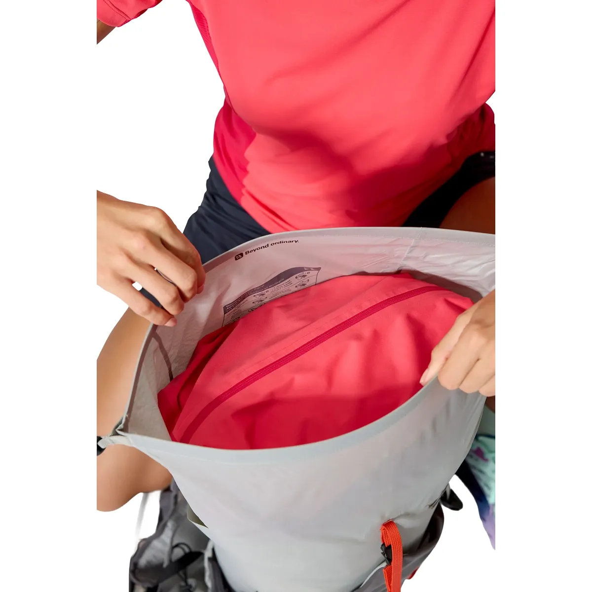 - El cierre superior enrollable con opción de hebilla lateral permite que el paquete se expanda y comprima a medida que cambia su equipo.