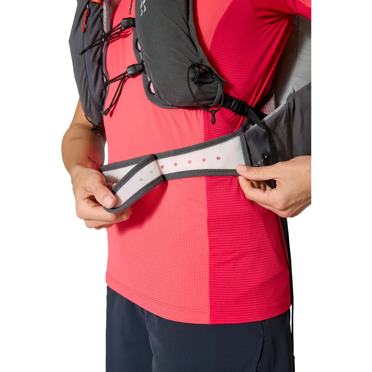 - El ultraligeroMalla monoEl arnés absorbe la humedad mínima, con un sistema de correa elástica para el pecho y un cinturón de cadera asimétrico para mayor comodidad y estabilidad.